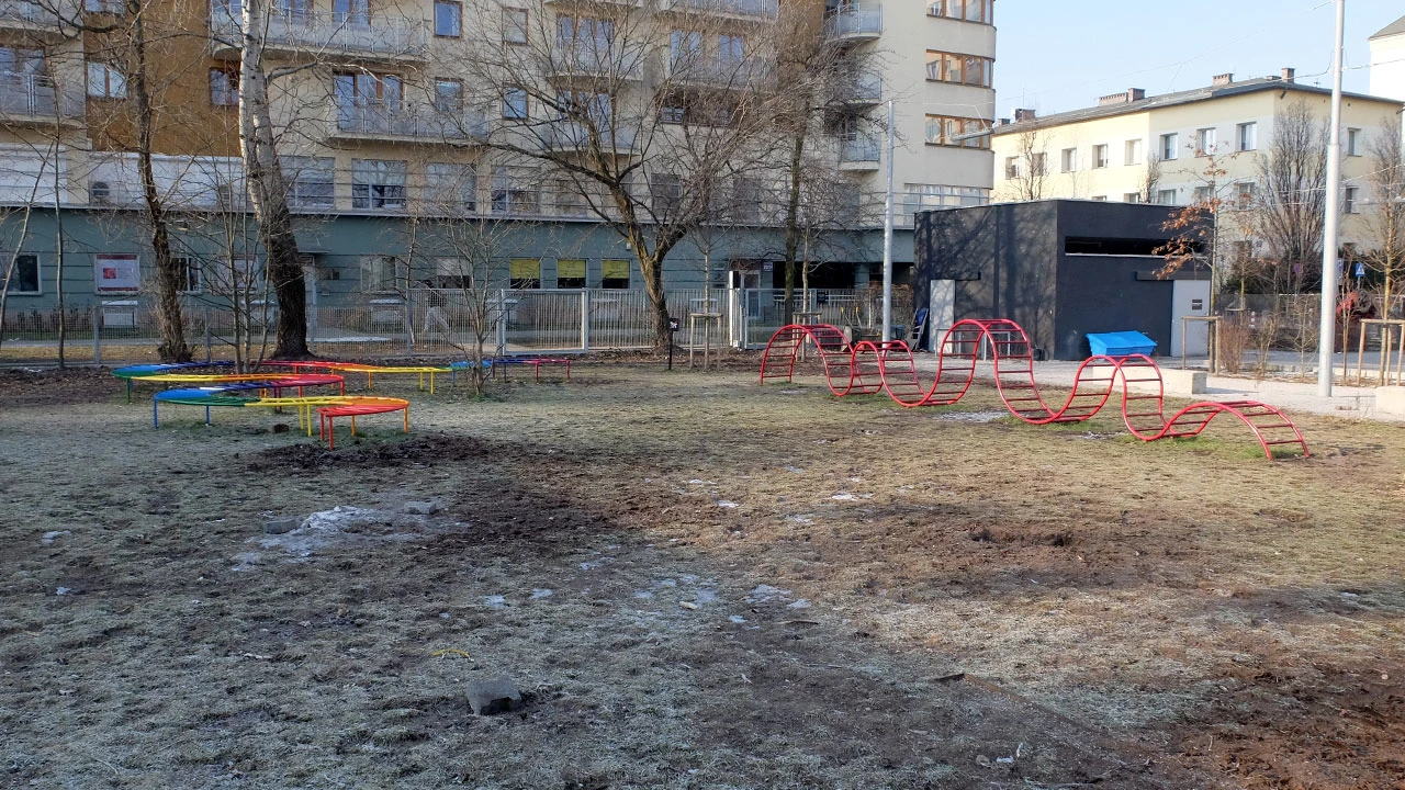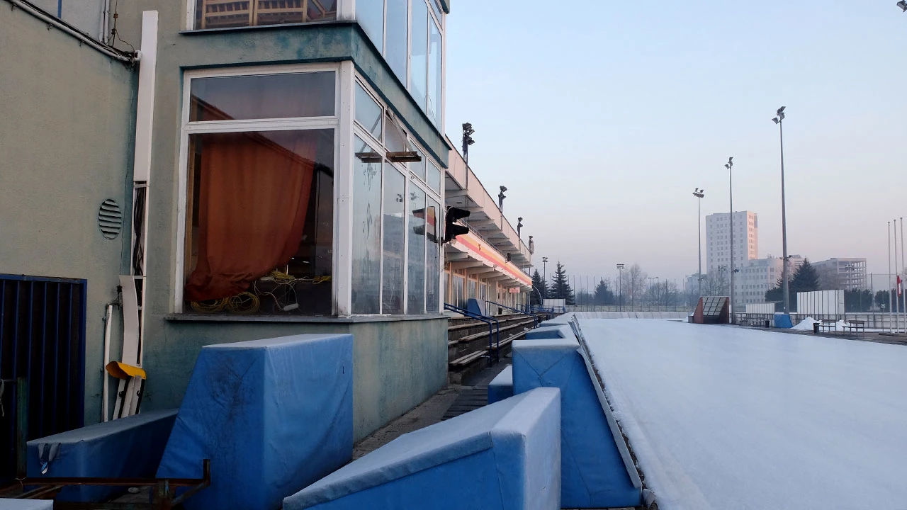 Niedaleko galerii, przy rogu Sobieskiego i Sikorskiego, jest Tor Łyżwiarski Stegny. On też nie zalicza raczej rozkwitu, a brzydotą emanuje potężnie – gdzie jest Springer?