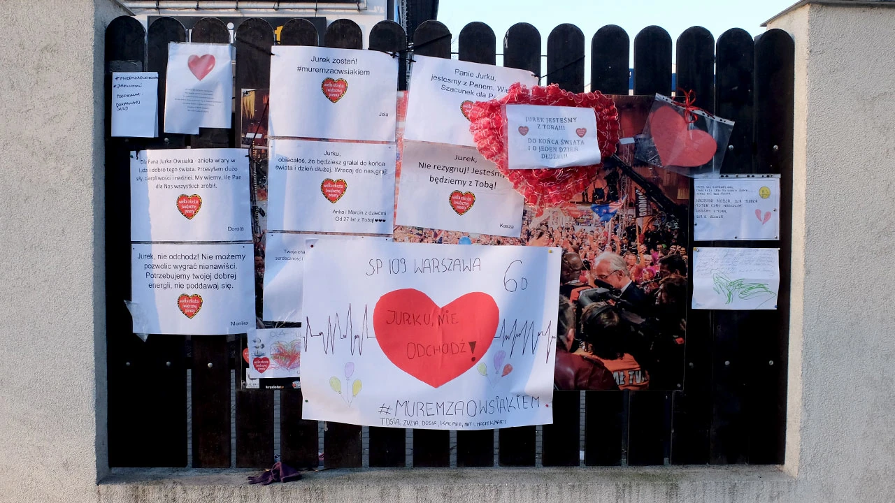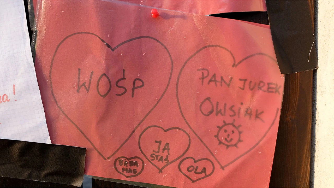 Śródziemnomorską dojeżdżamy do Sobieskiego, a potem skręcamy w Wilanowską by jechać w stronę Górnego Mokotowa. Zatrzymujemy się na Dominikańskiej, przy siedzibie Wielkiej Orkiestry Świątecznej Pomocy. Płot obwieszony jest prośbami by Jurek Owsiak nie odchodził; zapowiedział to w emocjonalnym wystąpieniu po zabójstwie prezydenta Adamowicza.