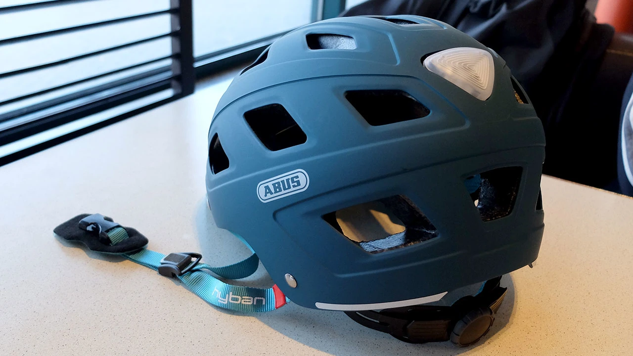 Piotrek nabył nowy kask i następuje prezentacja. Abus, co prawda robi głównie zapięcia, ale może i z kaskiem sobie poradzi. Piotrek na razie jest zadowolony.