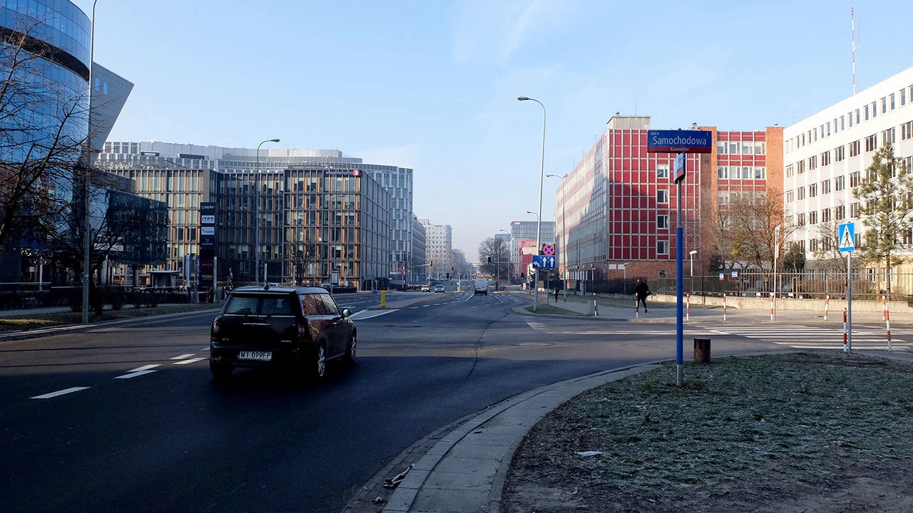 Ogrzani ruszamy w stronę Mordoru: al. Lotników, Modzelewskiego (a może jeszcze Gintrowskiego?) do Domaniewskiej. Patrząc od Samochodowej w głąb Domaniewskiej mamy przegląd architektury Mordoru. Jest poczciwy biurowiec typu Lipsk – z czasów gdy o tym terenie mówiono jeszcze Służewiec Przemysłowy. Na rogu z Wołoską widać Saturn – jeden z pierwszych mordorowych budynków. Są plany, by część biurowców z kompleksu Empark, w skład którego wchodzi też Saturn, wyburzyć i pobudować osiedle mieszkaniowe. Widać też młodsze biurowce.