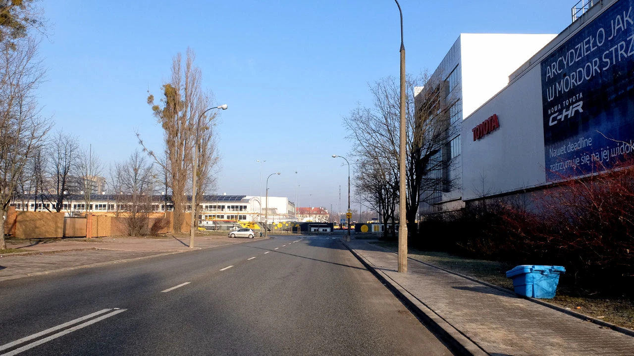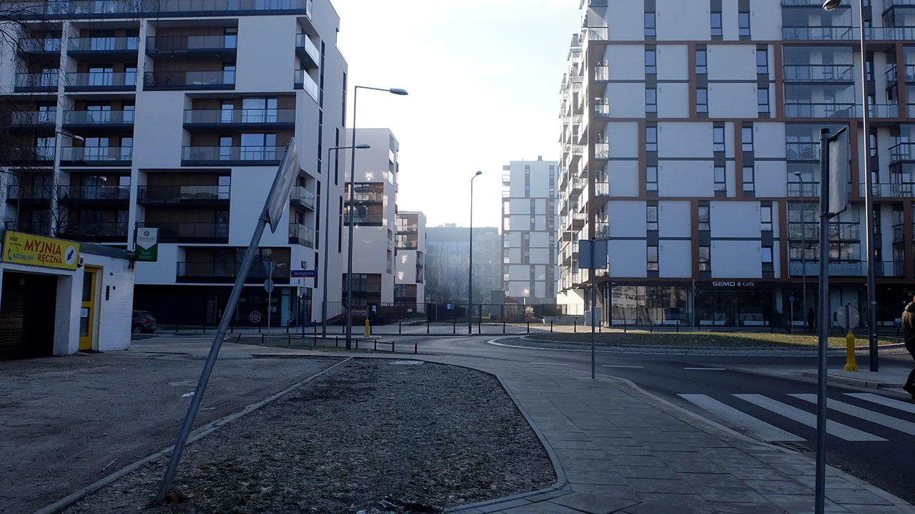 Konstruktorską w stronę Suwak wjeżdżamy między blokasy. Dużo ich i niezbyt piękne one są.
