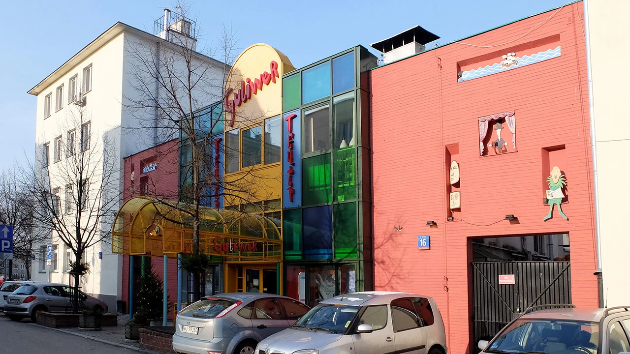 Przeskok Wiśniową przez Dąbrowskiego do teatru Guliwer. Teatr Lalek Guliwer został założony w październiku 1945. Nazwę zyskał w grudniu 1947 po premierze sztuki "Guliwer w krainie liliputów". Do siedziby na Różanej przeniósł się w 1970 roku.