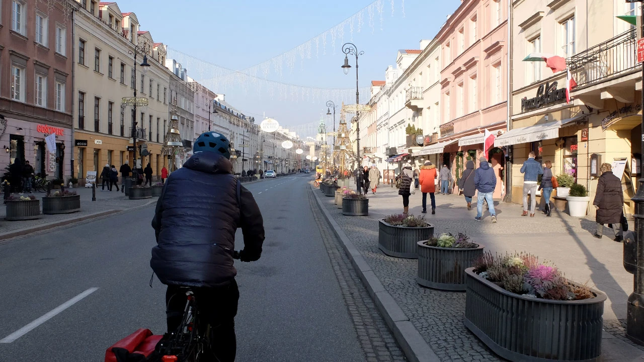 Zawijamy przez Skwer Tarasa Szewczenki i Bagatelą jedziemy do Ujazdowskich. Potem pasaż Nowym Światem i Krakowskim Przedmieściem i zjazd na Most Śląsko—Dąbrowski.