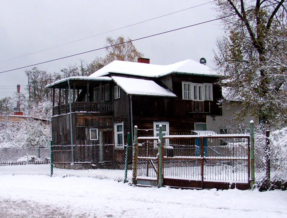 Dosłownie obok stoi Świdermajer, przykład architektury charakterystycznej dla letniskowej zabudowy linii otwockiej. Ten wprawdzie jest montażem drewniano-ceglanym, jednak w okolicy można spotkać sporo dobrze zachowanych drewnianych arcydzieł architektury. Jest zimno i droga daleka przed nami, więc ruszamy obiecując sobie powrót w te okolice dla samych Świdermajerów.