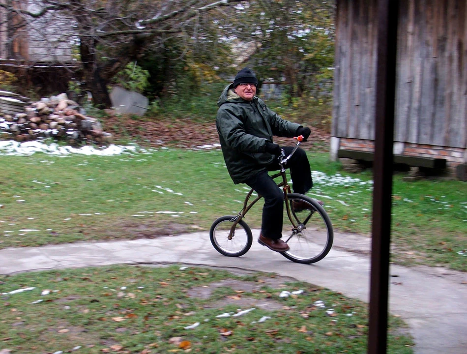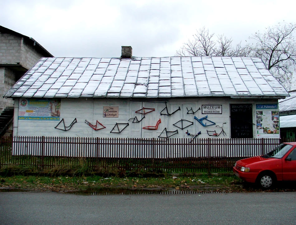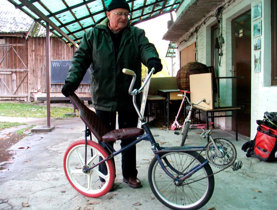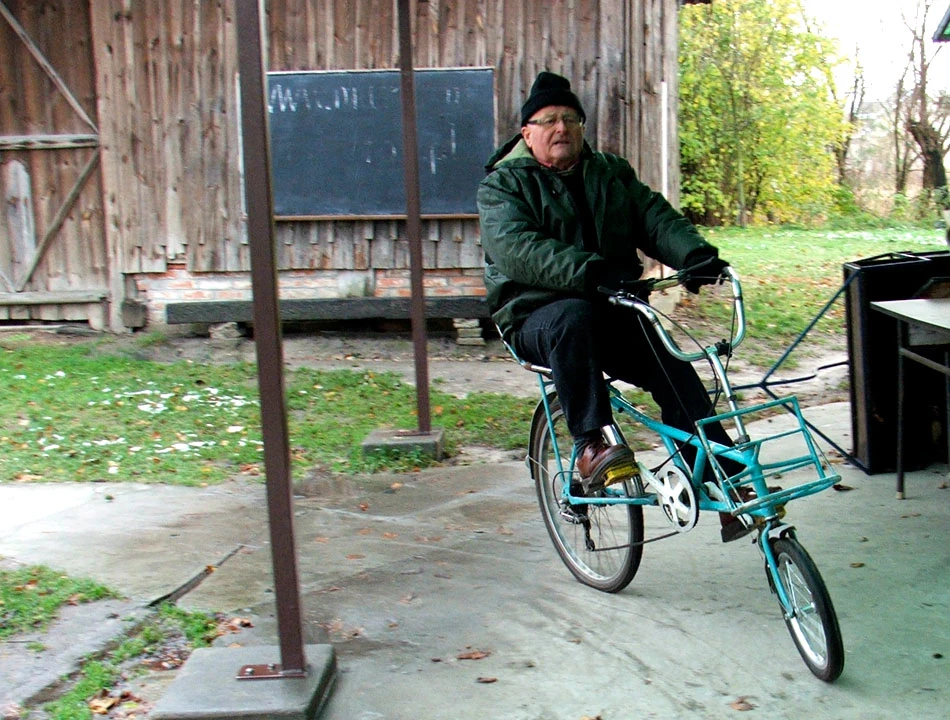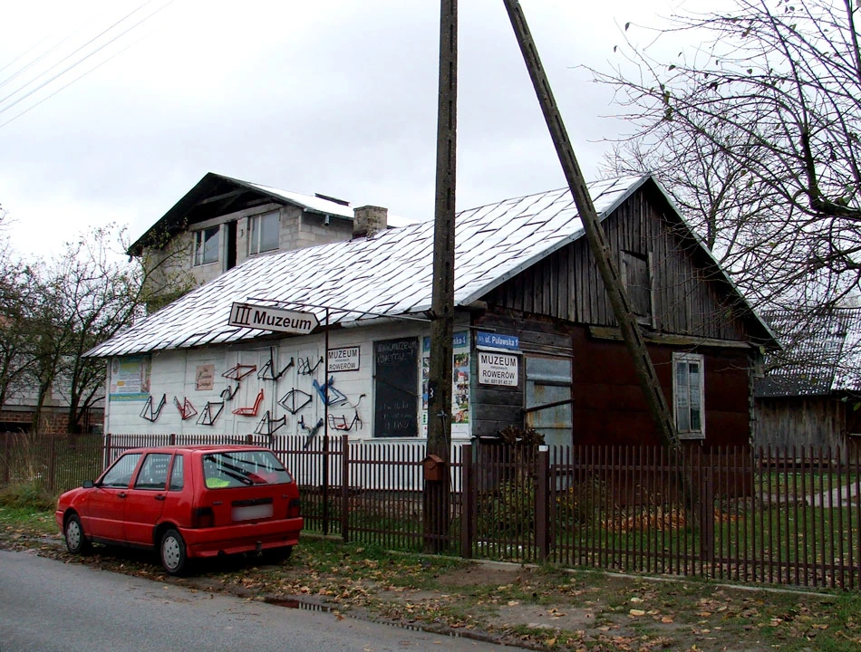 Po bardzo długiej przerwie należy nam się porządna wyprawa. Znaleźliśmy w internecie Muzeum Nietypowych Rowerów z siedzibą w miejscowości Gołąb koło Dęblina. Odległość przyjazna, Lubelszczyzna obiecuje ciekawe krajobrazy, więc warto się ruszyć. Dzień przed wyjazdem miny nam rzedną, bo zaczyna padać śnieg i sypie tak przez całą noc. Jednak słowo się rzekło, a poza tym umówieni jesteśmy z panem Józefem Konstantym Majewskim, kustoszem muzeum.