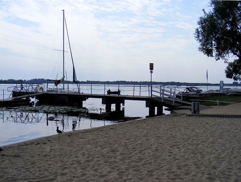 Przy pomoście cumują żaglówki, łabędzie nieomal jedzą z ręki, Wielbiciele wędkarstwa moczą kije. Na dodatek jest tu spokojnie i miło.