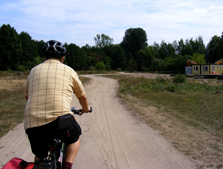 Kierujemy się w stronę Serocka. Do ronda, gdzie zbiegają się trasy na Nowy Dwór i Legionowo, jedziemy drogą numer 61. To słaby wybór, bo auta śmigają dość szybko, a droga wąska. Dalej, w stronę Zegrza, jedziemy drogą techniczną poprowadzoną wzdłuż właściwej trasy.