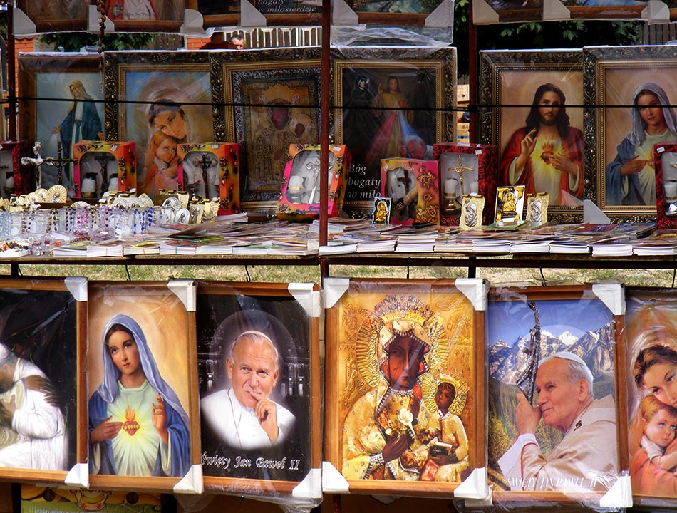 Jak to na odpuście jest tu wszystko. Oczywiście dewocjonalia i święte obrazy, ale też artykuły gospodarstwa domowego, ubrania, buty i wiele innych.