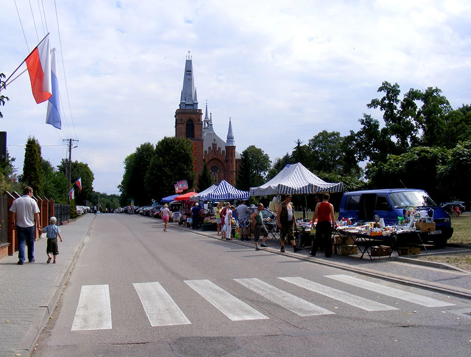 Marcin wypatruje tablicę, naktórej Serock reklamuje się plażą z molo i rynkiem. Tutaj takie atrakcje? Jedziemy w stronę Narwi, droga ma wyraźny spadek. Najpierw natrafiamy na rynek: spory i ładny. A potem dojeżdżamy do kościoła i ze zdumieniem czytamy, że gród w Serocku istniał już w XI wieku, prawa miejskie Serock otrzymał w XV wieku, a parafia istnieje od XIV wieku.