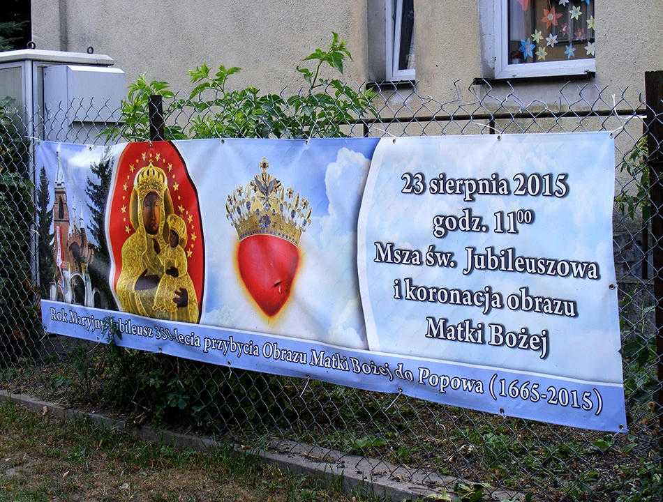 Wjeżdżamy do Popowa. Trafiamy na odpust z okazji 350-lecia przybycia obrazu Matki Boskiej do Popowa. Impreza jest duża i poważna.