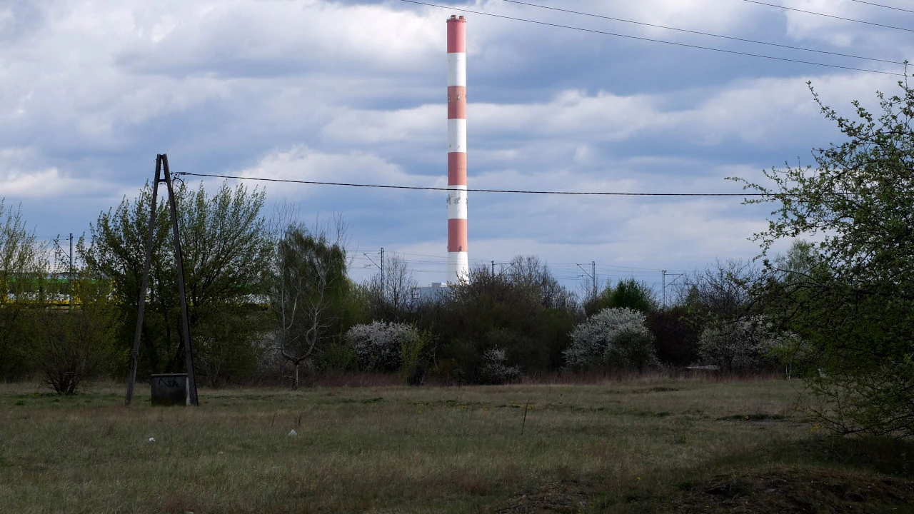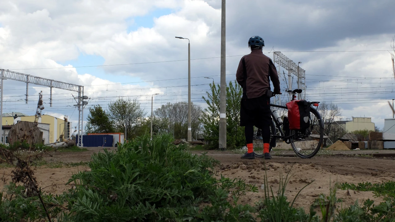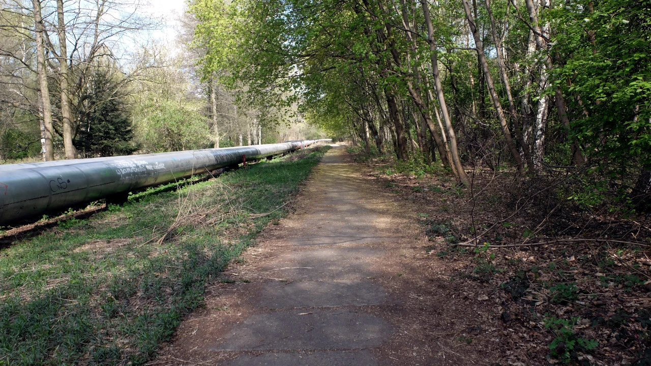 I tak sobie jedziemy przez lasek, obok rur ciepłowniczych, hojnie rzuconych pośród traw.