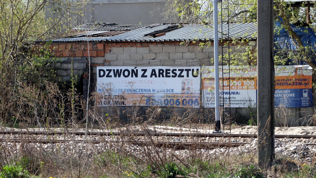 Dojeżdżamy do Chłopickiego i otwiera się nam widok na Areszt Śledczy. Jak można przeczytać na stronie, miał on być ośrodkiem pracy więźniów dla potrzeb kolejnictwa. Obecnie Areszt Śledczy przeznaczony jest min. dla tymczasowo aresztowanych kobiet i mężczyzn, dla skazanych kobiet odbywających karę pozbawienia wolności po raz pierwszy, młodocianych i recydywistek. Mogą w nim przebywać chorzy na cukrzycę, kobiety poruszające się na wózku oraz osadzeni objęci programem metadonowym. Pojemność aresztu: 632 miejsca. Jest on położony pośród torów, ale pociągów chyba nie widać z okien. Jak wiadomo reklama dźwignią handlu, więc nie dziwi na oferta taniego dzwonienia z aresztu. Stan baneru podpowiada, że biznes chyba już nie działa.