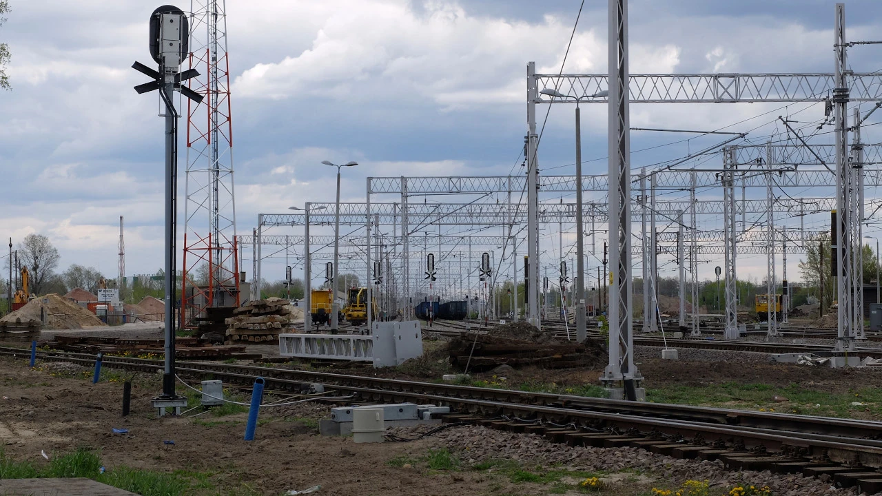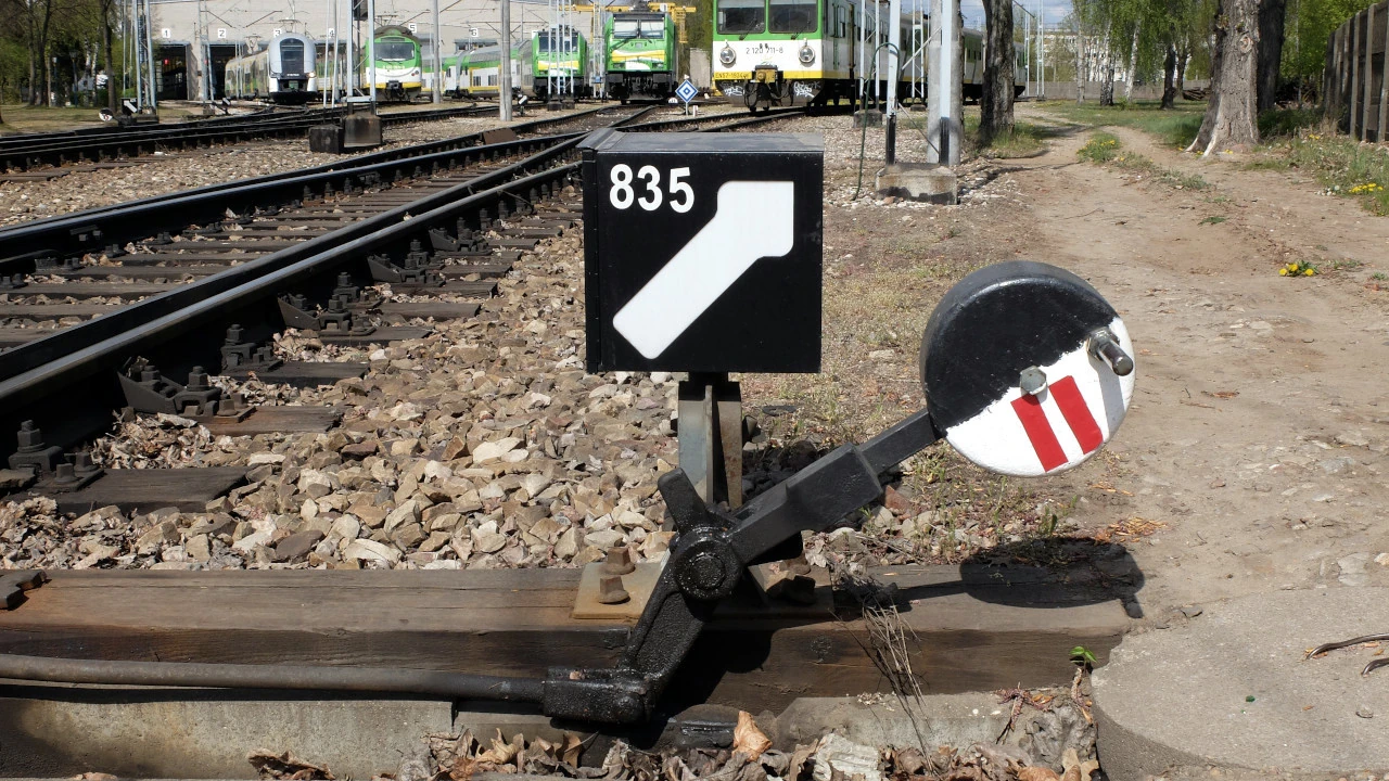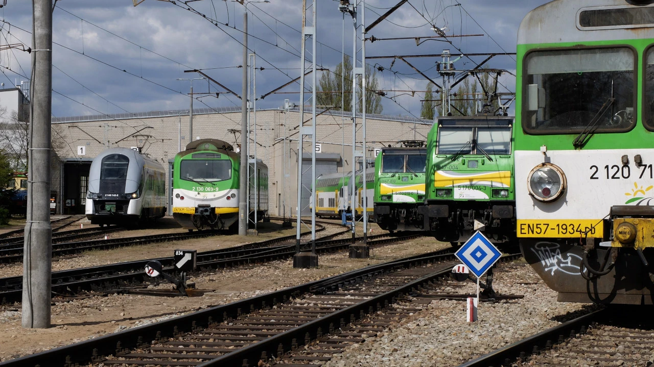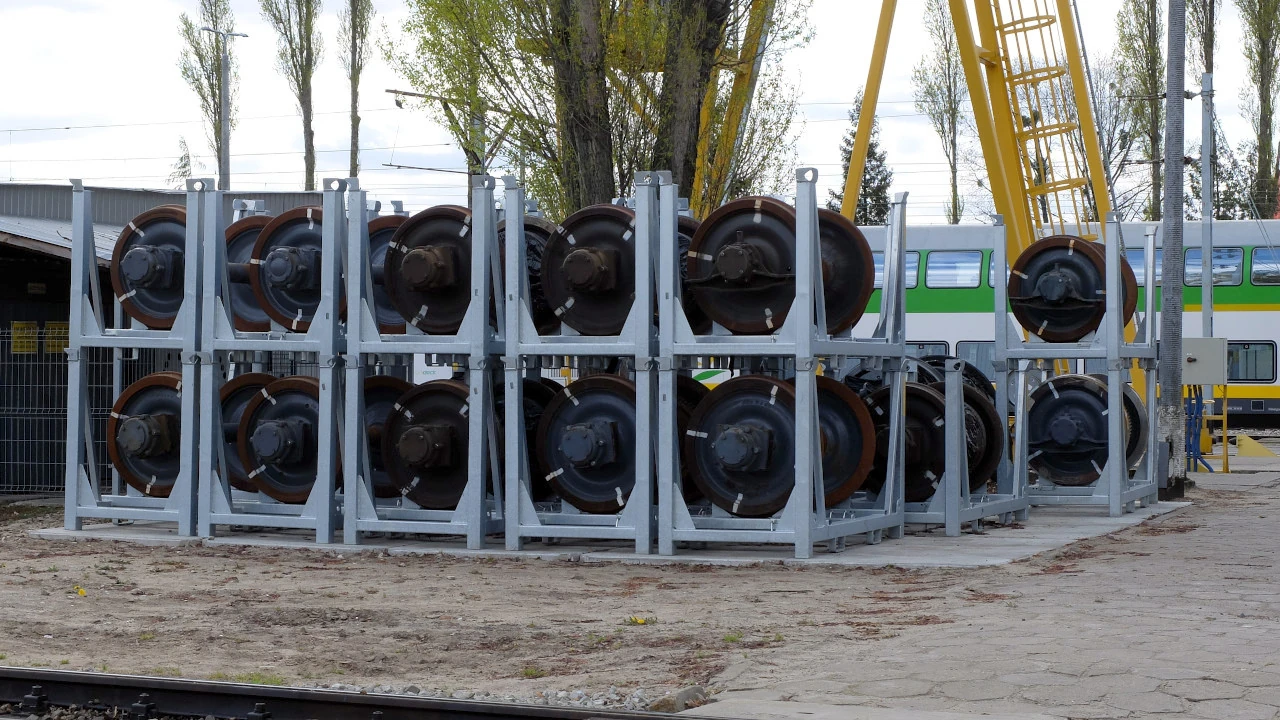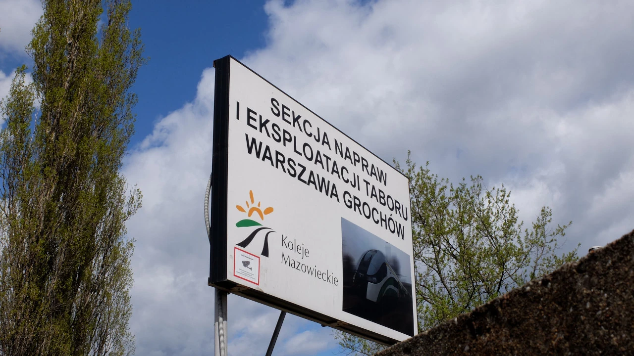 A obok pełen industrial: stacja naprawcza Kolei Mazowieckich. Pociągi, lokomotywy, podwozia zgromadzone tu są jak zabaweczki ze Składnicy Harcerskiej.