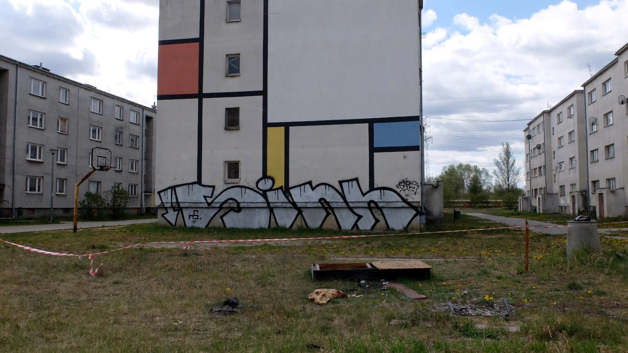 Nam aura podsuwa sceny z okolic Czarnobyla. Domy są opuszczone. Niektóre okna zabite płytami, poniewierają się śmiecie. Na ziemi leżą porzucone zabawki, części garderoby.