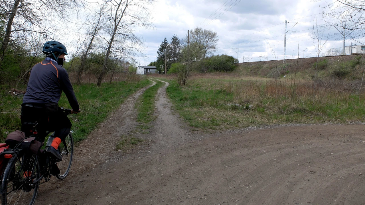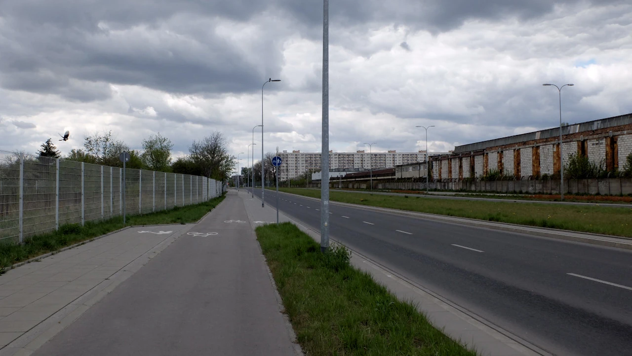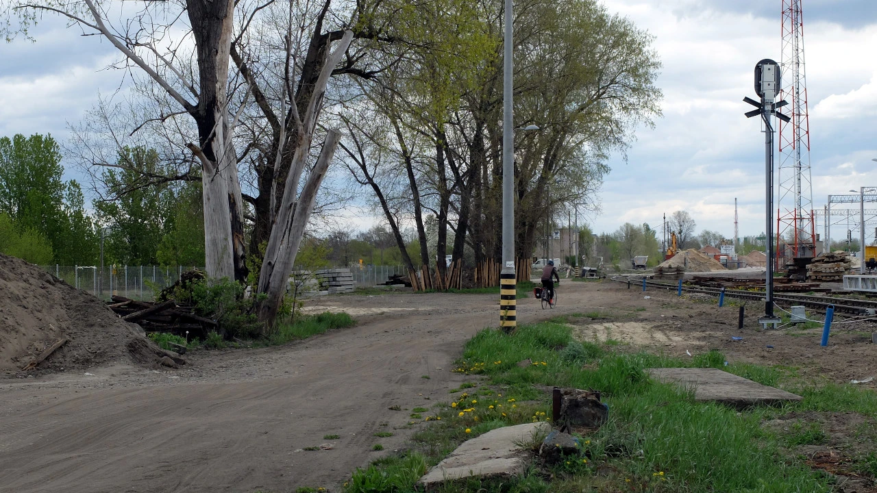 Jedziemy kawałek obok nasypu, potem jedziemy ulicą Kozia Górka. Na wysokości Wiatracznej przenosimy rowery przez tory i docieramy do Zabranieckiej.