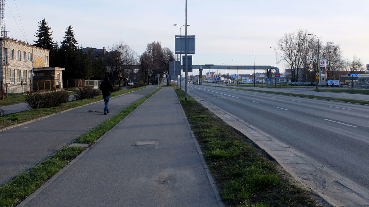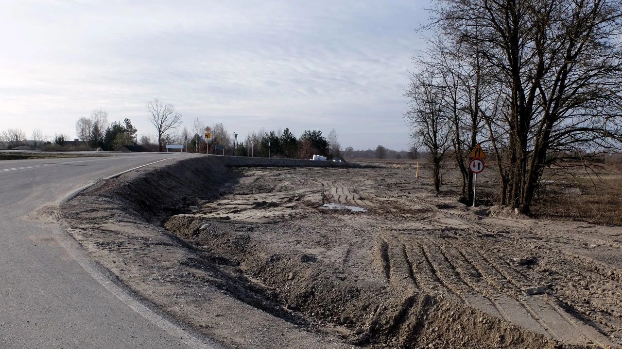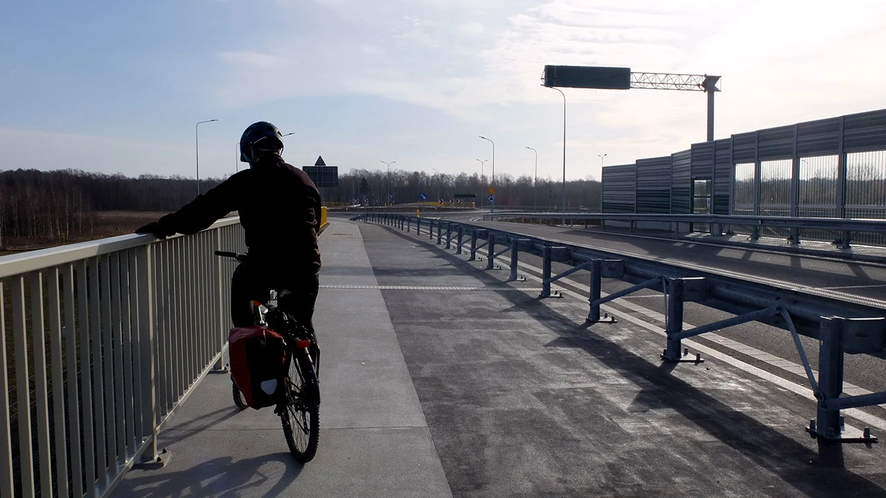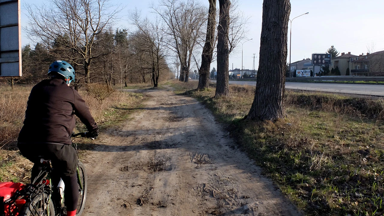 Dalej jedziemy poboczem. Często się tak dzieje, że kończy się Warszawa i kończy się infrastruktura. Współpraca międzygminna to trudna sprawa. Mijamy M1 i estakady drogi na Białystok.