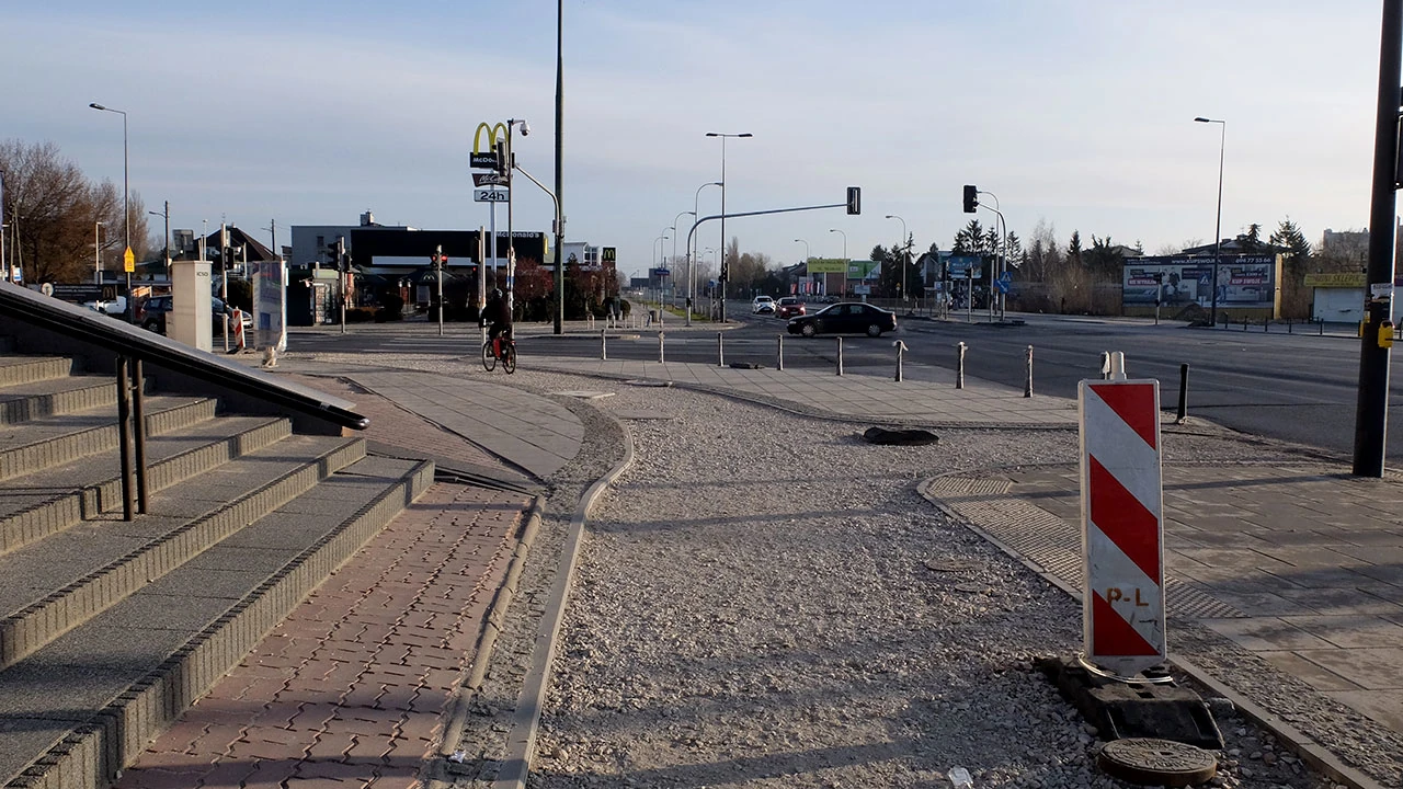 To sam środek cywilizacji, rzeczona obwodnica Marek. Przejęła ruch z miasta, choć dzisiaj samochodów jakby mniej.