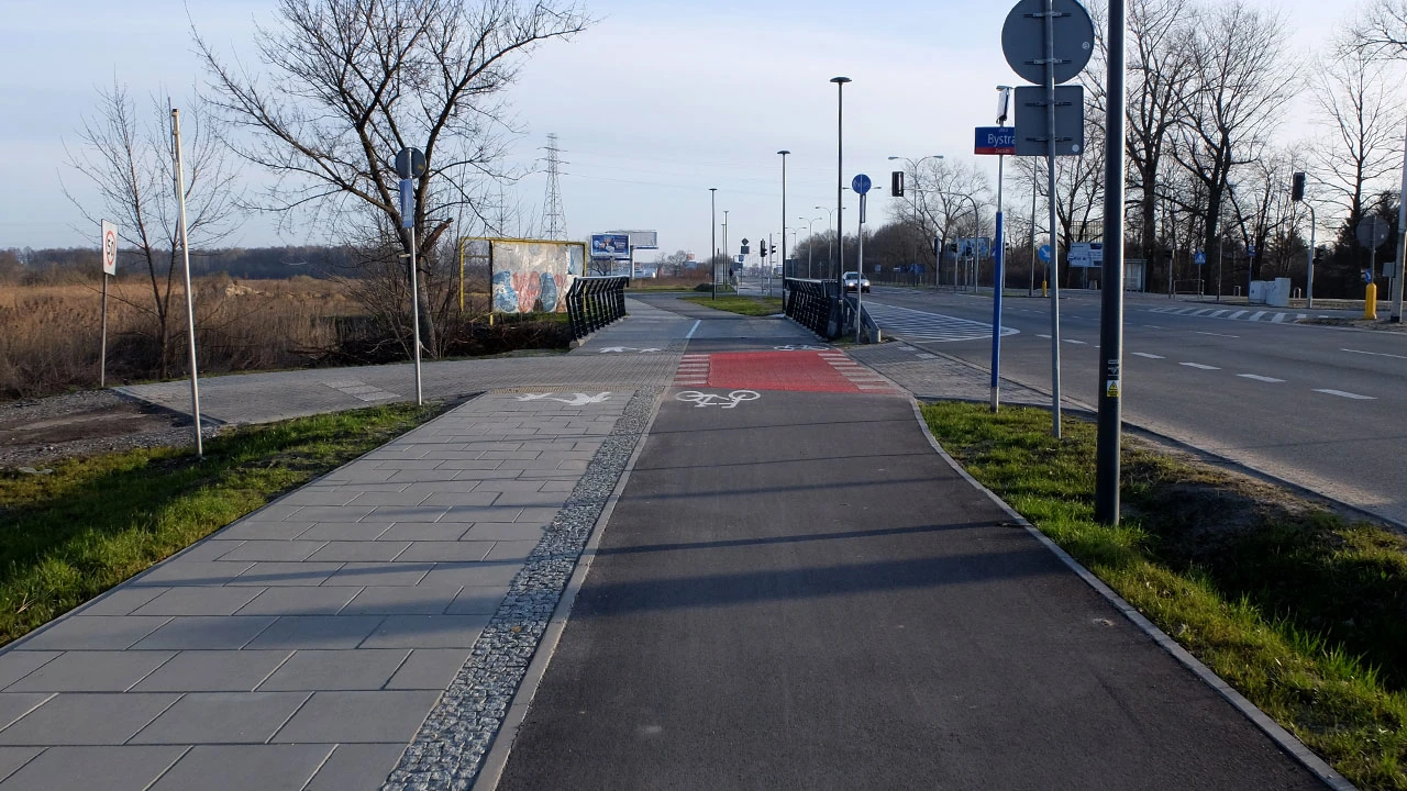 Tu droga jest elegancka: asfaltowa, odseparowana od chodnika. Dalej też jedzie się wygodnie.