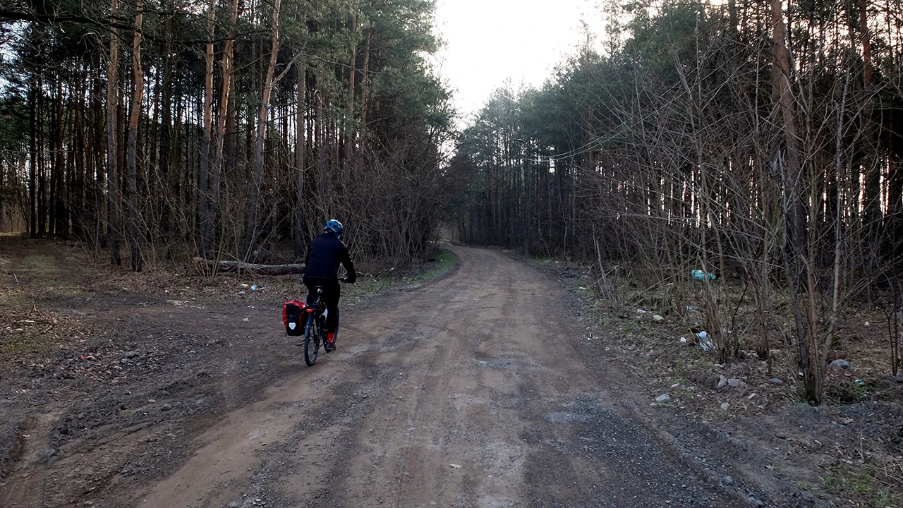 Jak to na nieoczywistej wycieczce, mamy mały krosik po leśnej drożynie.