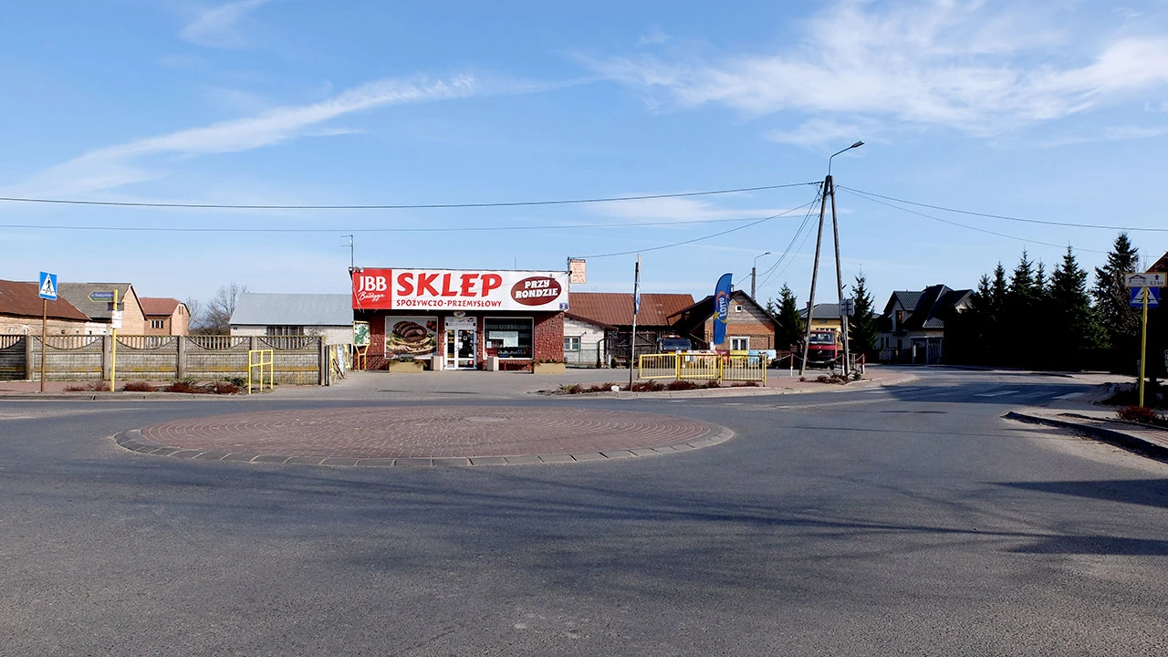 Potem wjeżdżamy między zabudowania i oto jesteśmy w miejscowości Pólko. Jak to się odmienia? W Pólku?