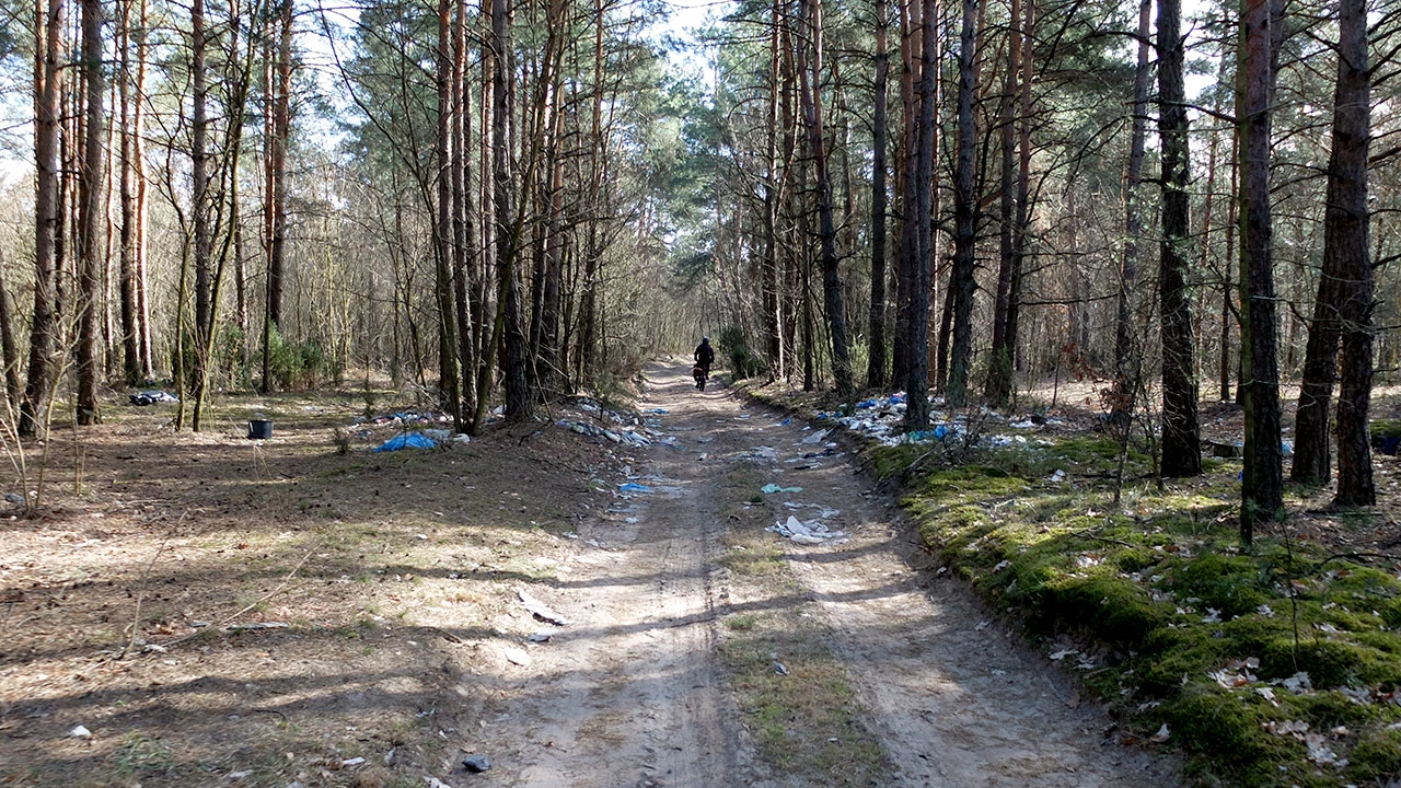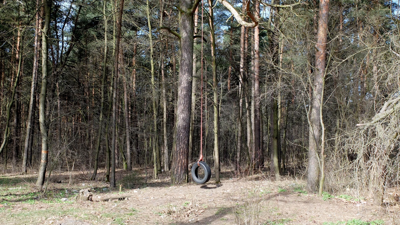 Zbliżamy się do Jasienicy Mazowieckiej. Na szczęście ludzie potrafią w lesie także się bawić, nie tylko śmiecić.