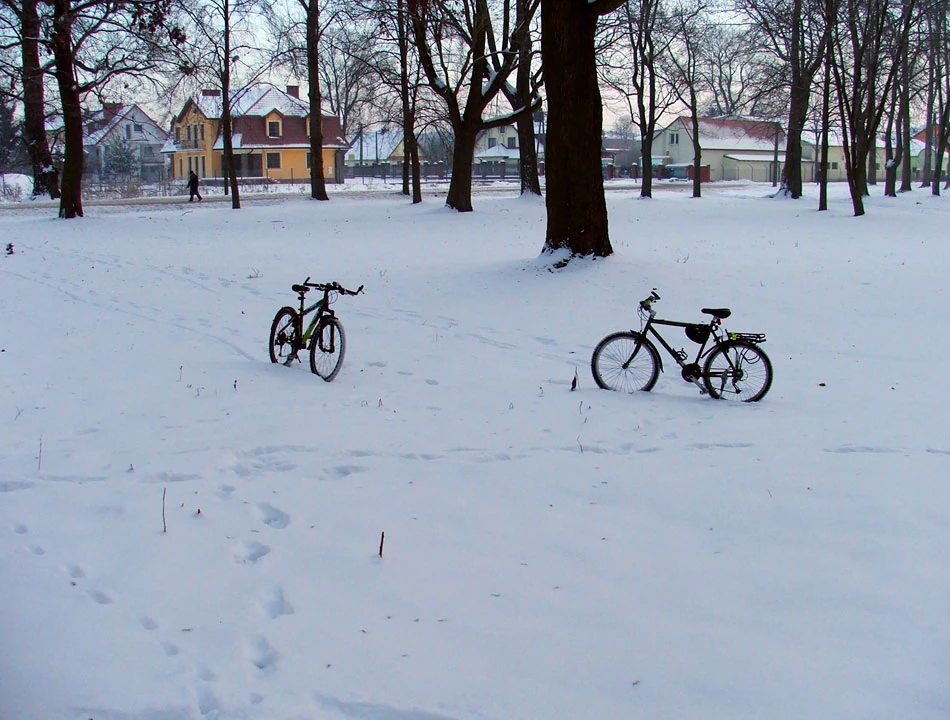 Kręcimy się trochę po uliczkach Okuniewa, ale mróz znowu nas dopada. Chowamy się w sklepie spożywczym, wypijamy herbatę z termosu i obiecujemy sobie szybkie, rozgrzewające tempo w drodze powrotnej.