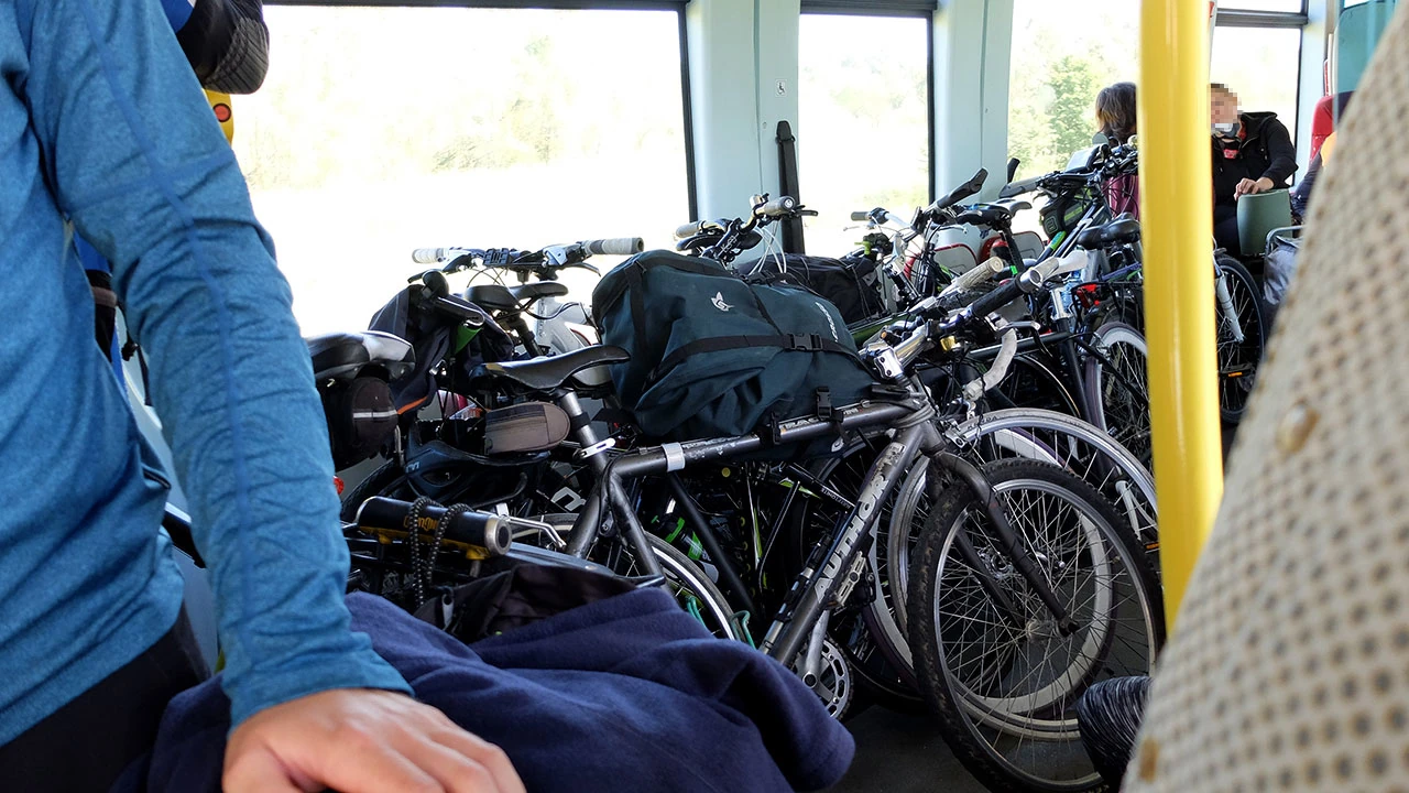Przesiadamy się do pociągu Kolei Regionalnych. Chyba wszyscy rowerkowcy przesiedli się do naszego pociągu. Wszyscy się mieścimy, choć robi się ciasnawo – jedziemy pojedynczym szynobusem. Przewóz rowerów staje się płatny – dziwne to nasze państwo – zachęt do jazdy rowerem nie przybywa, a rower i pociąg jakoś nie chcą się skleić.