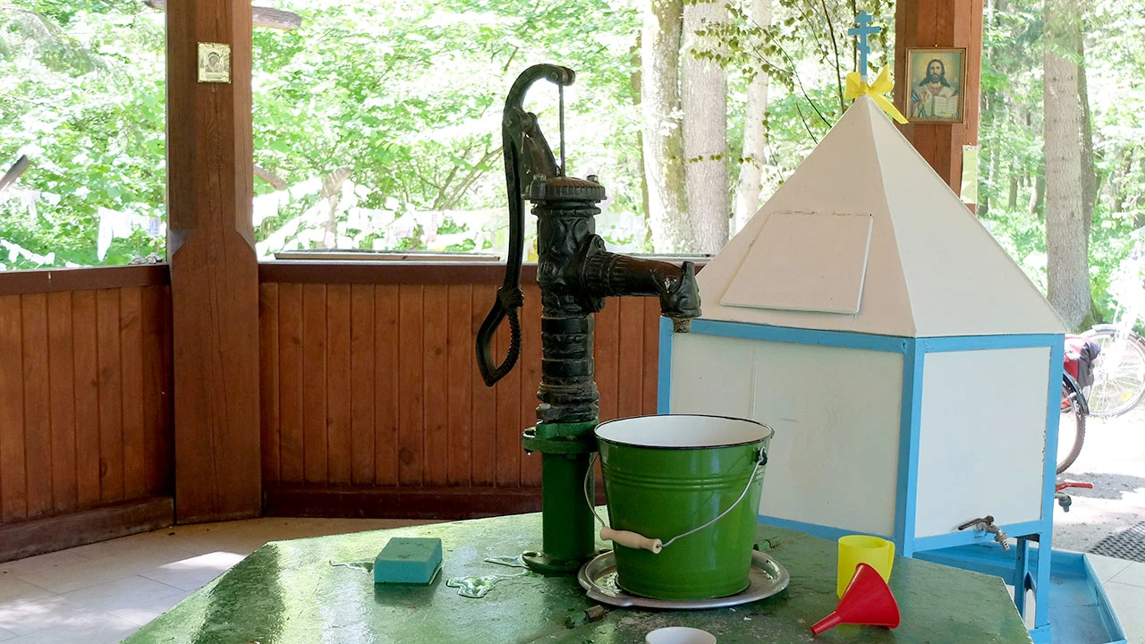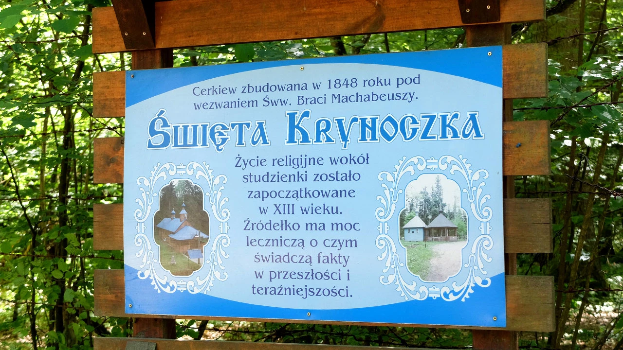 Coś co miejscowa ludność nazwała Krynoczką, oficjalnie nazywa się uroczysko Miednoje, od rdzawego koloru wody w źródełku tu bijącym. Miejsce znane jest od XIII wieku, a wzmianki o leczniczych właściwościach źródła datowane są na XIX wiek. Ze względu na duże ilości żelaza i siarki występujące w wodzie, planowano zbudowanie tu sanatorium. Jednak w połowie XIX wieku zbudowano tu cerkiew.