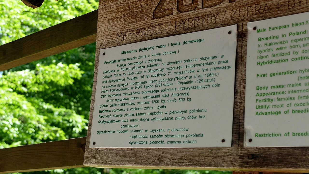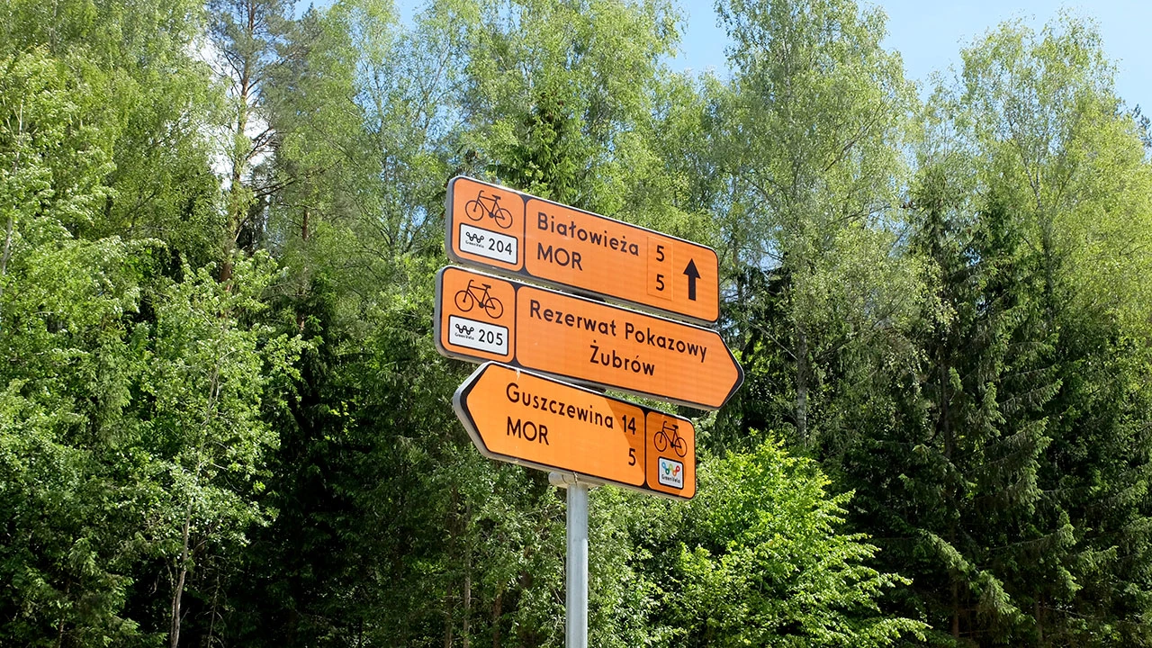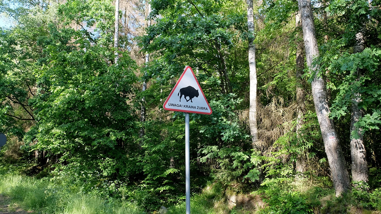 Widzimy znowu oznaczenia Green Velo. Te są dokładniejsze, maja numer drogi, wskazują miejsce i odległość do niego. Marcin chce zobaczyć Pokazowy Rezerwat Żubrów. Jak czytamy na stronie Białowieskiego Parku Narodowego „zwierzęta w Rezerwacie eksponowane są w warunkach półnaturalnych, w dużych zagrodach pokrytych naturalną roślinnością, mogą więc nie być widoczne przez cały czas”. Lekko podekscytowani jedziemy.