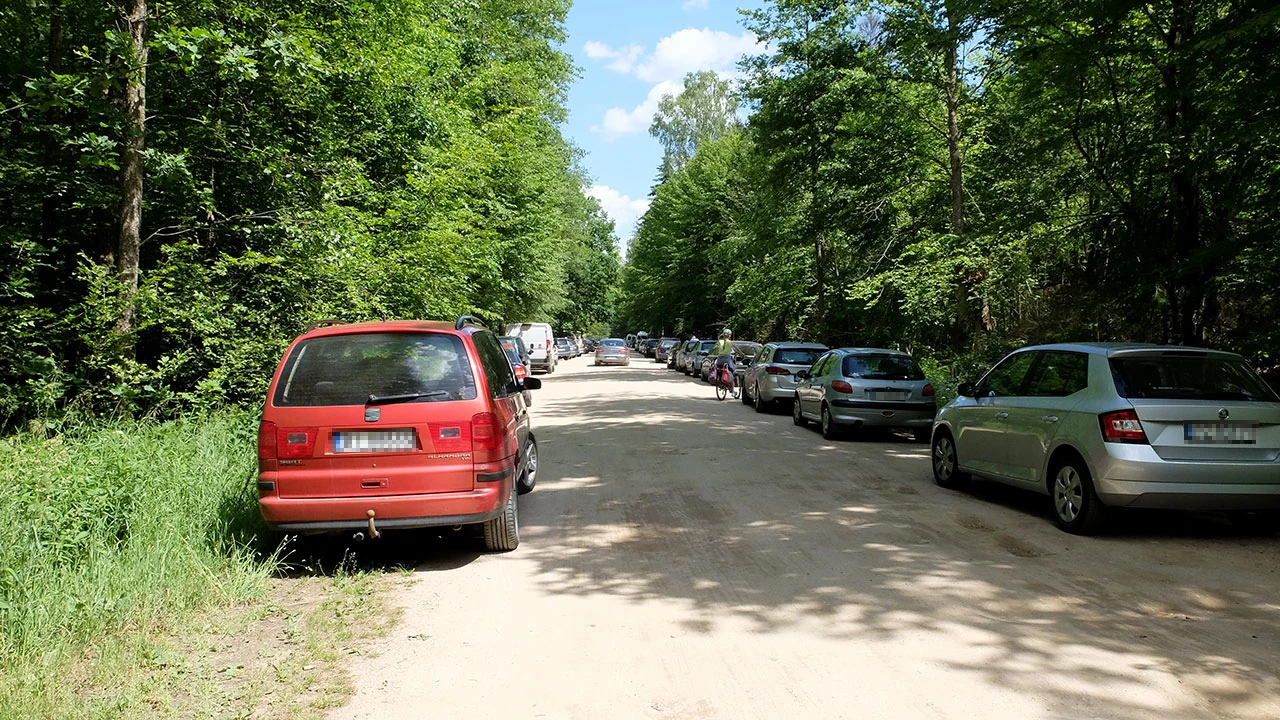 Trochę nas mrozi widok tylu samochodów – to raczej warszawski krajobraz niż puszczański. Potem jest jeszcze gorzej.