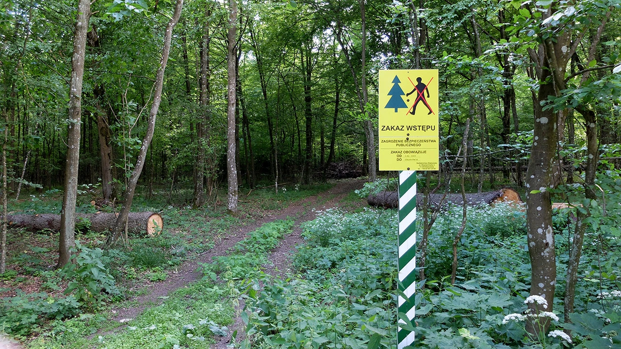 Przez las jedziemy do drogi wojewódzkiej 689. Towarzyszą nam, sławne już w całej Polsce, zakazy wstępu do lasu. Słabo to wygląda: do ogrodzonego zoo – rezerwatu można wejść za pieniądze, do otwartego lasu w ogóle nie można wejść.