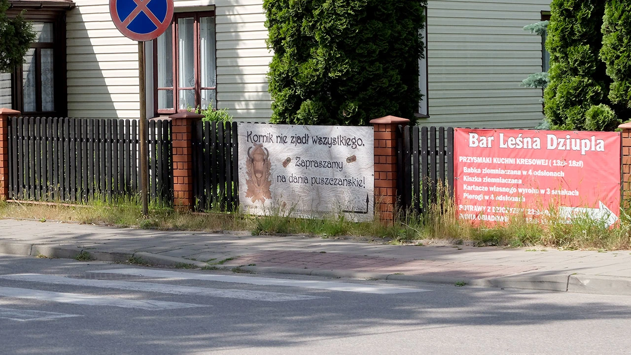 Podczas przejazdu przez Białowieżę towarzyszą nam mieszane uczucia. Jedziemy w zasadzie przez nieco większą wioskę, jakby przypadkiem zlokalizowaną przy parku narodowym. Wiemy, że II Wojna Światowa zahamowała rozwój miasteczka. Jednak to co się nam głównie rzuca w oczy, to stragany i banery.