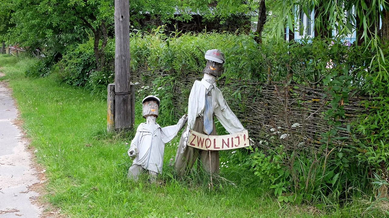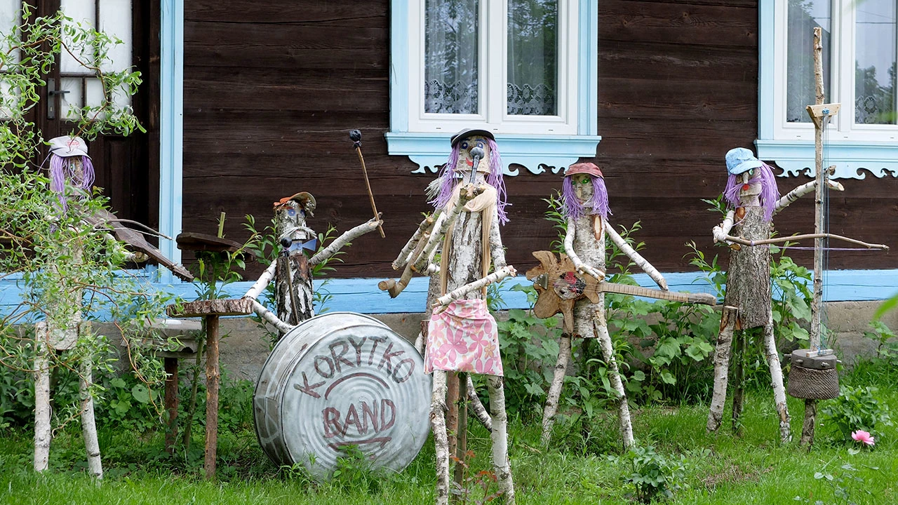 We wsi jest więcej ciekawych elementów kultury materialnej. Przed jednym z domów przygrywa kapela (ludowa), w innym miejscu jest zachęta by się nie rozpędzać.