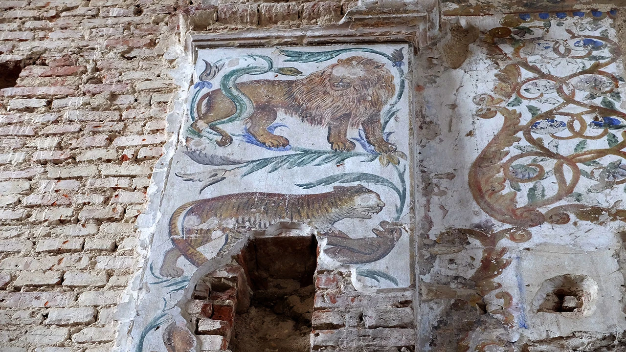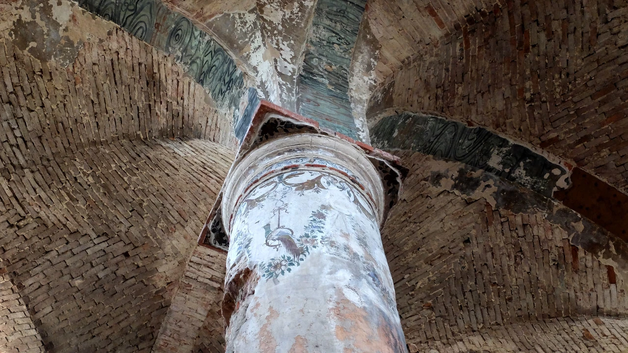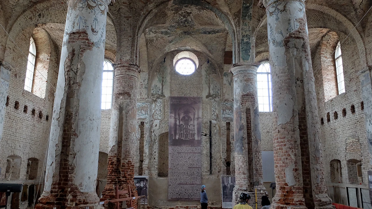 Synagoga wewnątrz jest mocno zniszczona i widać tylko resztki polichromii. Kiedyś musiały być bardzo piękne. Teraz odbywają się tu wystawy, koncerty, spotkania.