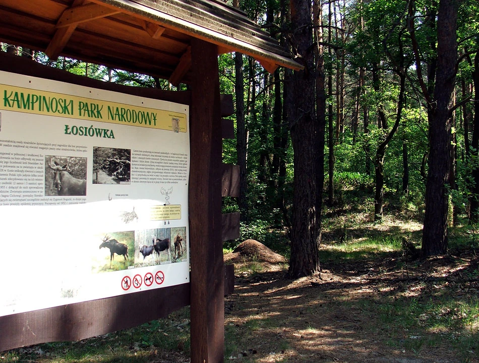 Gdy w parku narodowym widzimy na tablicy napis: wróć do najbliższego szlaku, to warto zastosować się do polecenia. Nawet jeśli taka tablica wisi tylko kilkanaście kilometrów od Warszawy. Zboczenie ze szlaku skutkuje brodzeniem w błocie po kostki.