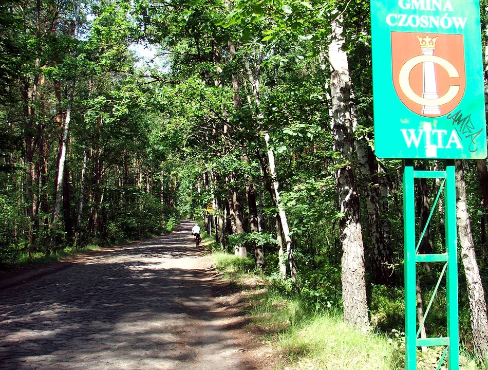 Giną nam gdzieś po drodze znaki na Kampinos, mimo tego Kampinoską wjeżdżamy do puszczy. Po drodze pojawiają się oznakowania drogi na Palmiry i znajome znaki kierujące na Kampinos.
