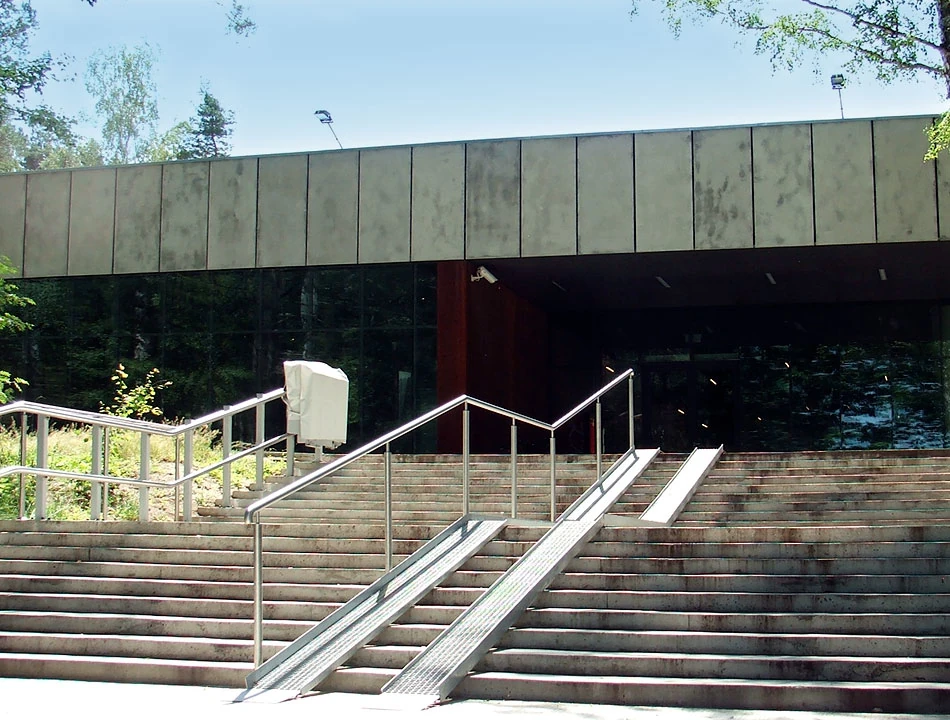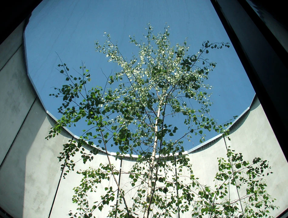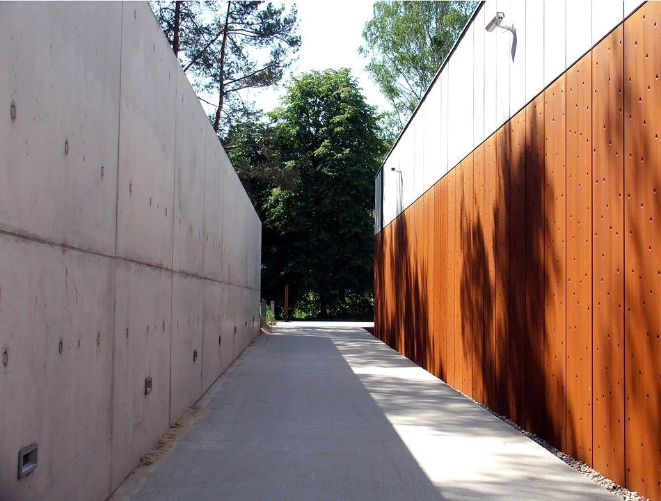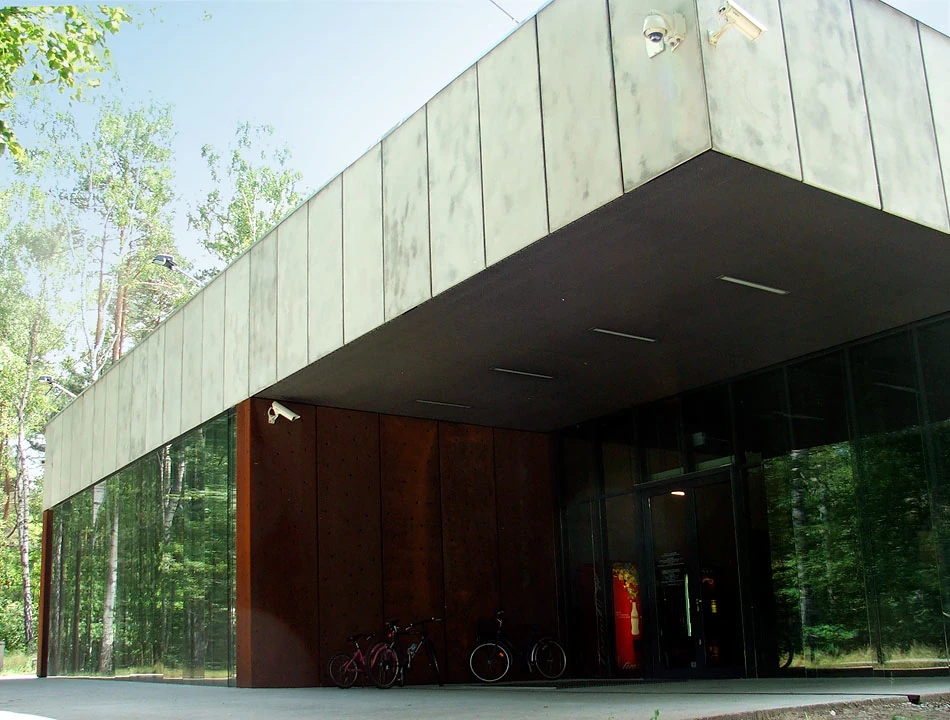 Nowy budynek muzeum ma nieco ponad rok. Zaprojektowany jest tak, by wtapiał się w puszczę. Wewnątrz budynku, w specjalnych przeszklonych tubach, rosną brzozy, a elementem wystroju są zdjęcia kampinoskich krajobrazów. Zewnętrzne ściany pokryte są blachą z imitacjami śladów po kulach.