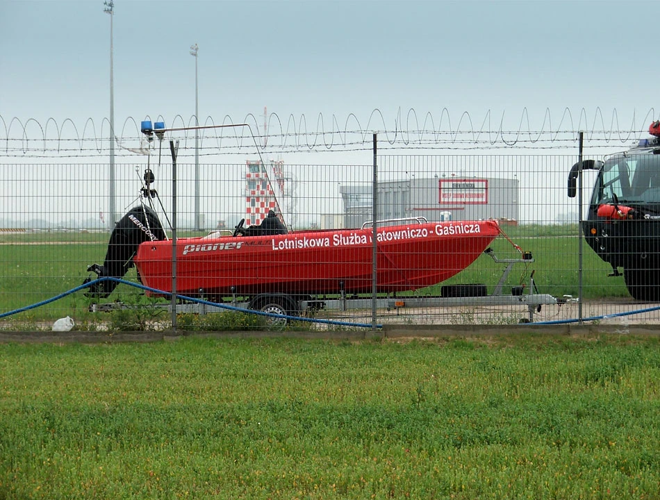 Naszą uwagę najbardziej przykuwa motorówka lotniskowej służby ratowniczo-gaśniczej. Do rzeki co prawda niedaleko, ale czy aż tak blisko, by przewidywać udział sprzętu pływającego podczas akcji ratunkowej?