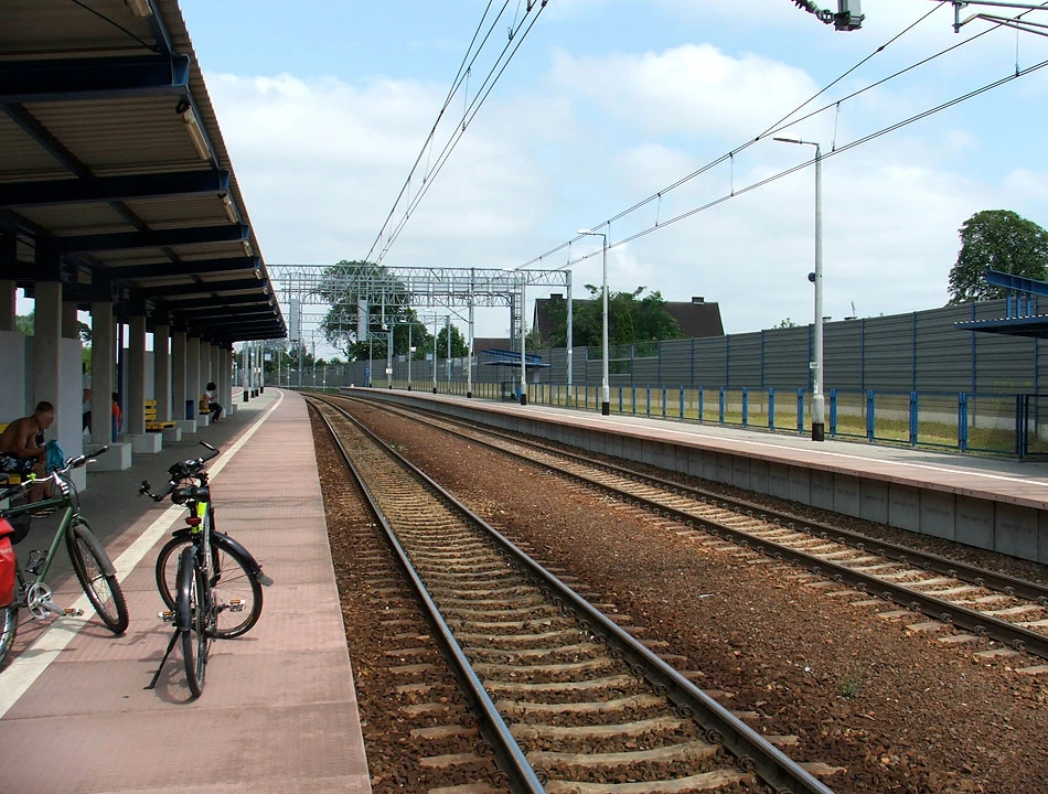 Docieramy do rynku w Zakroczymiu i potem ulicą Warszawską kierujemy się w stronę Modlina. Przecinamy drogę E77 i jesteśmy w Modlinie na znanej nam już ulicy Bema. Potem ulicami Chrzanowskiego i Ledóchowskiego docieramy do Chłodnej. W dół Kraszewskiego i ulicą Mieszka osiągamy stację Modlin. Dwanaście kilometrów pchania roweru; Piotrek ma serdecznie dość.