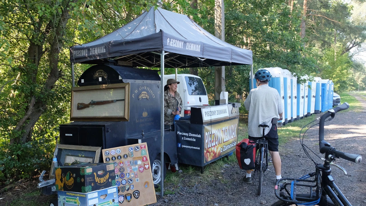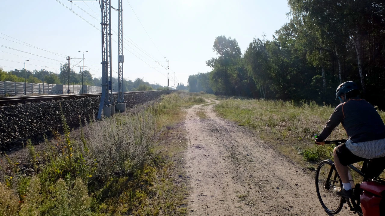 Zwykle na wycieczki wybieramy się w niedzielne poranki, jednak 15 sierpnia wypada w tym roku w czwartek. Taka inspiracja zdarza się nam po raz wtóry – ostatnim razem było to 7 lat temu. Jedziemy wzdłuż Ostrobramskiej i Marsa. To miłe, że z Grochowa do Rembertowa prowadzi całkiem porządna droga dla rowerów. Kulisy stacyjne, zaplecze jakie tworzą tory, w Polsce skąpane są w mieszance magii i zaniedbania. Jakieś drzwi donikąd, droga z nawierzchnią z trzech epok. Ciekawe czy tak też jest w innych miejscach kolejowego świata?