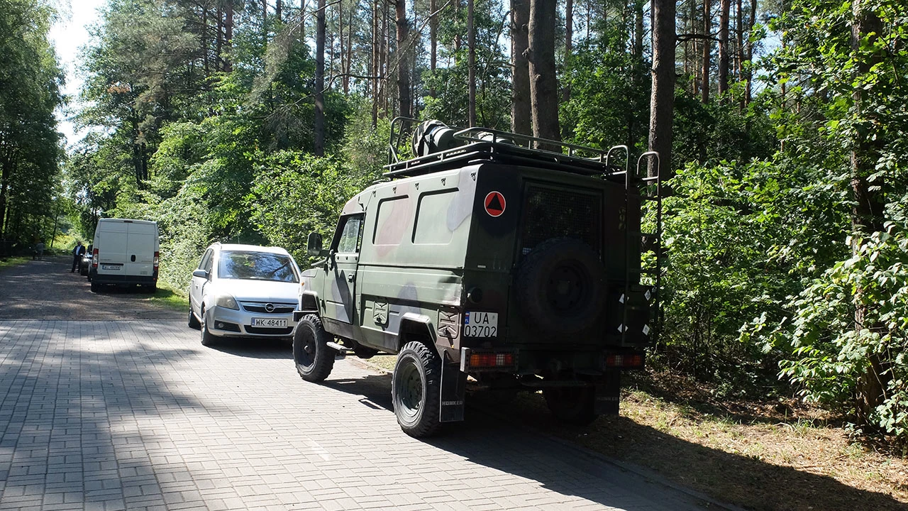 Ruszamy w stronę Ossowa, gdzie odbyła się jedna z bitew znanych jako Bitwa Warszawska; w bitwie tej zginął Ignacy Skorupka. Jedziemy po terenie dawnego, a może wciąż działającego poligonu wojskowego. Już tu kiedyś byliśmy, tylko jakby z innej strony. Poruszamy się drogami pożarowymi – Piotrek od lat obiecuje sobie zdobyć ich mapę. Jedziemy drogą numer 52, a potem drogą numer 45 i wreszcie drogą 42 dojeżdżamy do Cmentarza Poległych w Bitwie Warszawskiej. Nie bardzo nam się zgrywają numery dróg w realu z tymi na Googlach, ale kolejny cel osiągamy. Dla pewności pytamy o drogę lokalsów, bo jak się okazuje, poligon jest odwiedzany przez grzybiarzy i amatorów rekreacji.