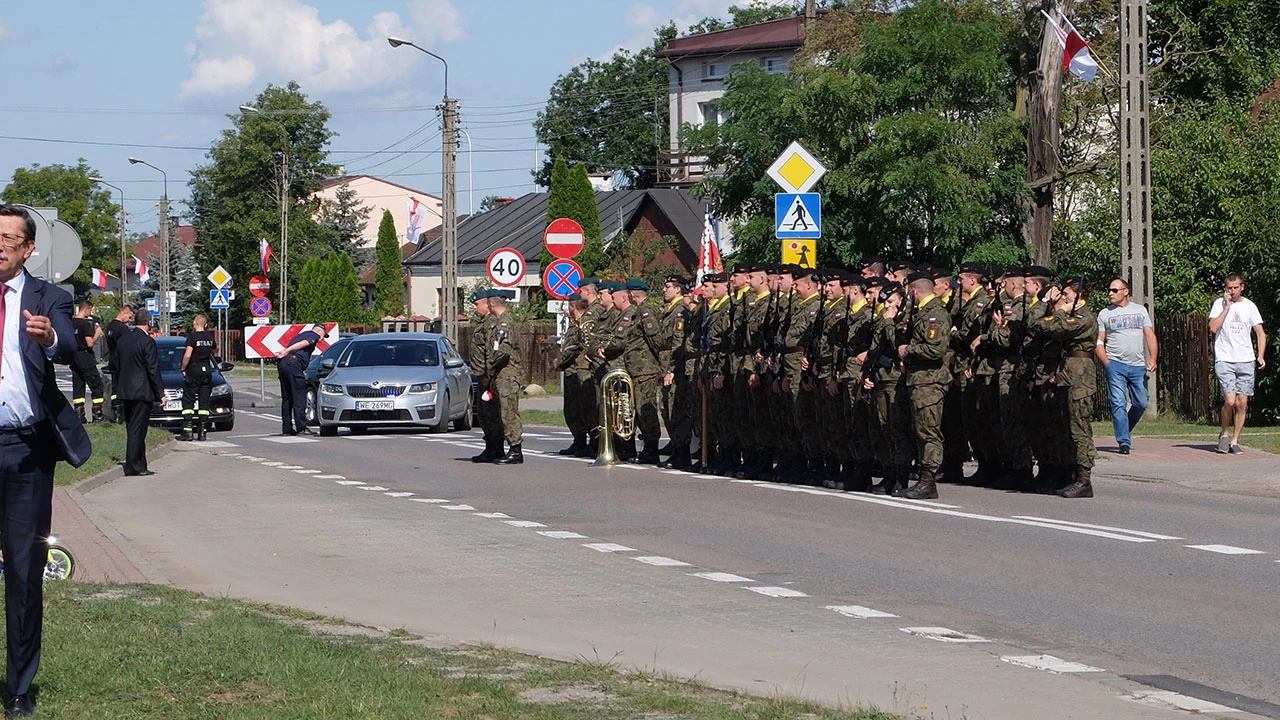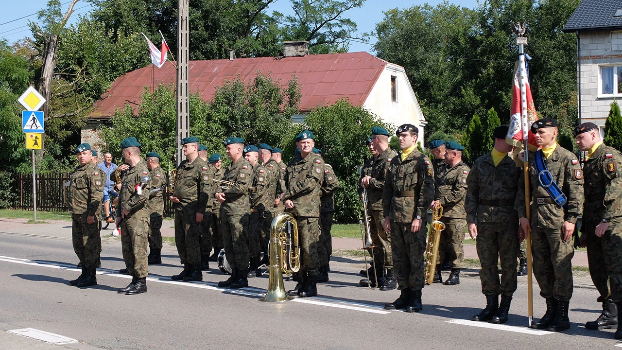 W centrum Ossowa wojskowa orkiestra i oficjele gotowi do uroczystości.