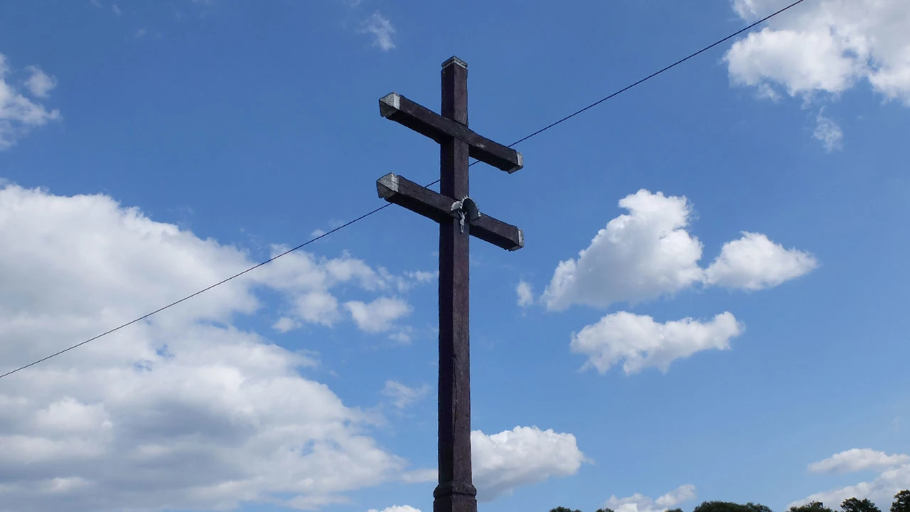 Potem natrafiamy na krzyż, który nie jest zbyt częsty na tych katolickich terenach.