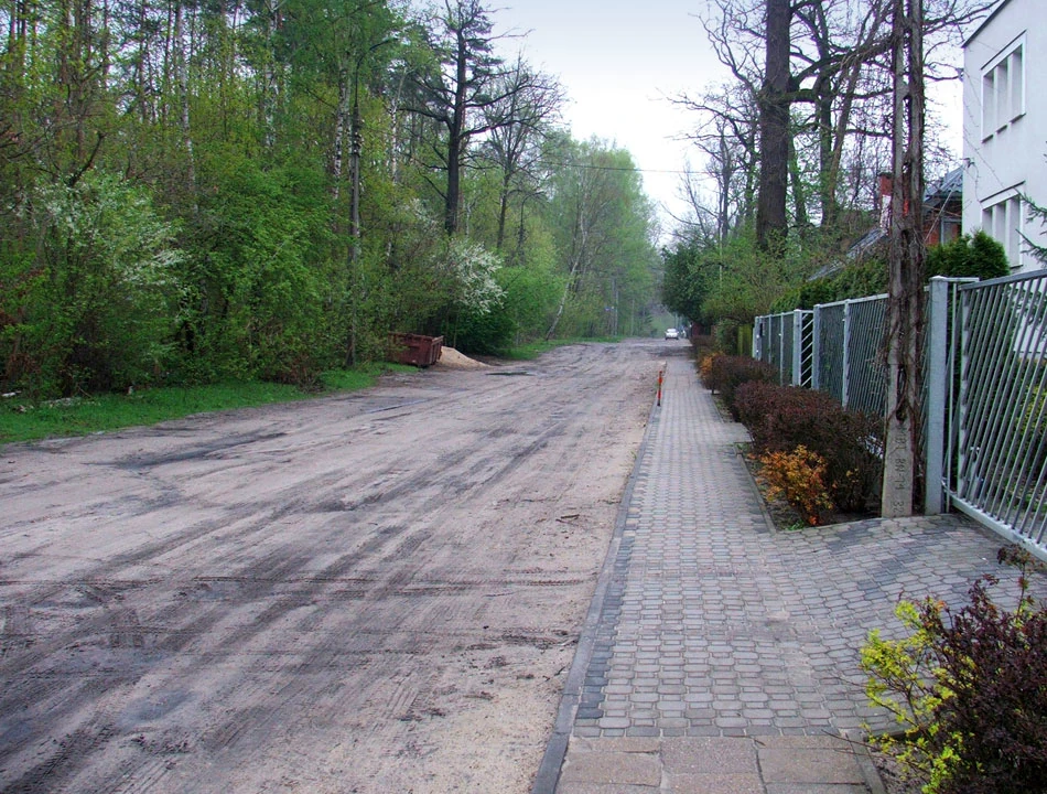 Od Dębego jedziemy w stronę Mińska Mazowieckiego. Wzdłuż szosy prowadzi dość wygodna droga, która ma charakter drogi lokalnej. W zasadzie już od Zakrętu da się bezpiecznie pojechać wzdłuż E30, bo obok drogi poprowadzono drogę dla rowerów i pieszych. Jednak jej nawierzchnia to kostka i jeździ się mało przyjemnie.