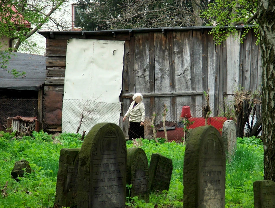 Dalej jedziemy ulicą, której patronuje 1 Pułk Lotnictwa Myśliwskiego „Warszawa”. Przed skrzyżowaniem z ulicą Dąbrówki trafiamy na Cmentarz Żydowski. Kiedyś pewnie miejsce pochówku usytuowane było za miastem; teraz wygląda tak, jakby kirkut ktoś wrzucił między zabudowania. Z jednej strony jest myjnia samochodów z rozkrzyczaną obsługą, z drugiej cmentarz sąsiaduje bezpośrednio z domami, trzeci bok to jakiś brzydki płot. Nie wiemy czy kirkut przetrwał wojnę, czy raczej jesteśmy na terenie lapidarium. Bardzo wiele macew jest przewróconych, popękanych, niekompletnych. W Mińsku i okolicach w czasie wojny zginęło ponad 5500 Żydów.
