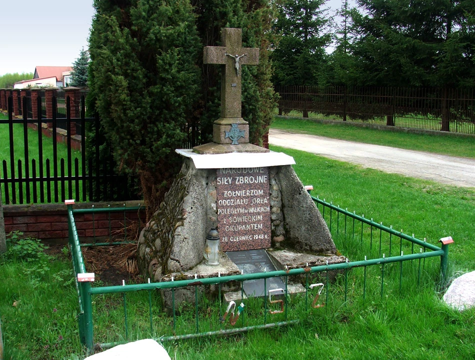 Przed Mińskiem Mazowieckim trafiamy na niemal powtórkę już dzisiaj widzianego obelisku. Tym razem jednak to nie tylko postument, to także mały cmentarz.