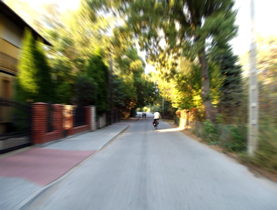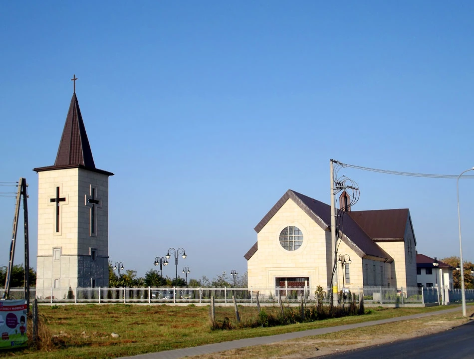 Pierwszy raz w historii Nieoczywistych Wycieczek Rowerowych umawiamy się po pracy. Marcin jedzie z Bielan, Piotrek z Mokotowa. Spotykamy się na Wale Miedzeszyńskim na wysokości Fieldorfa. Niebo bez jednej chmurki, słoneczko świeci pogodnie, jest ciepło. Z Wału Miedzeszyńskiego skręcamy w Kadetów. Na mapie Google regularna ulica zamienia się w utwardzoną drogę. I rzeczywiście w pewnej chwili droga kończy się zaporą z betonowych płyt, ale zaraz potem widać nowiutką nawierzchnię ze świeżutkim asfaltem. Piotrek pamięta te okolice jako bezkresne łąki. Teraz buduje się tu sporo, rosną zamknięte osiedla. Wyrósł też kościół w przewidywaniu rzesz przyszłych wiernych.