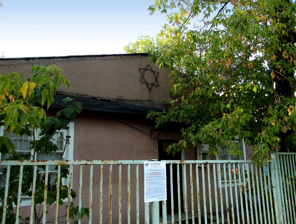 Lucerny podążamy w kierunku Mrówczej, a potem przez tory i przez chwilę jedziemy Żegańską. Zatrzymuje nas widok gwiazdy Dawida wykonanej z lampek choinkowych. Dość dziwne zderzenie kompletnie różnych tradycji. Tym dziwniejsze, że ma miejsce na budynku świetlicy Dzielnicy Wawer.