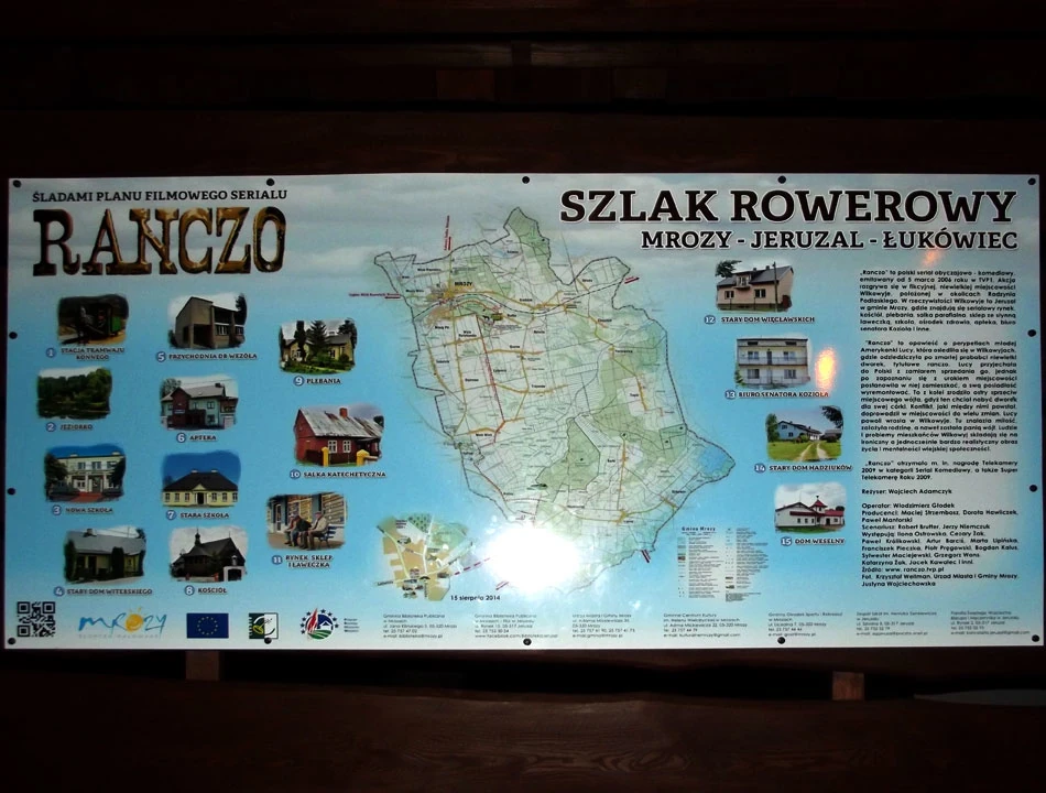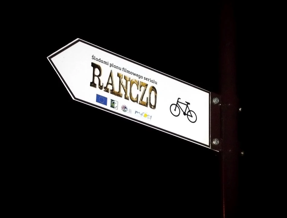 Na ciemnej drodze miga nam jakaś tabliczka. Zaprasza nas na przejażdżkę szlakiem serialu Ranczo. Skręcamy.