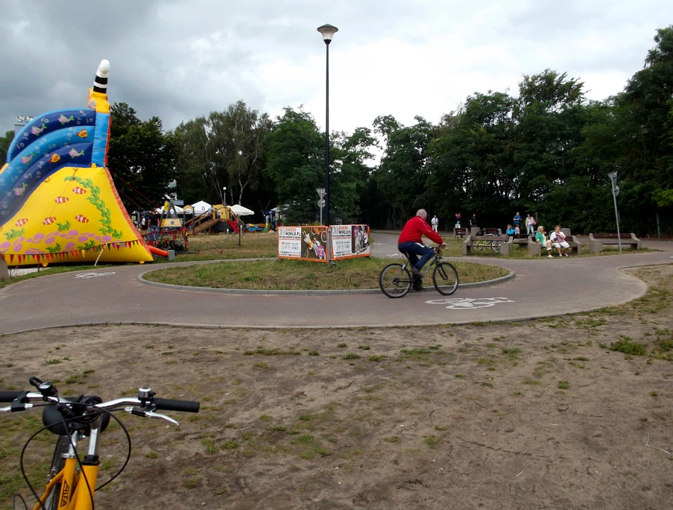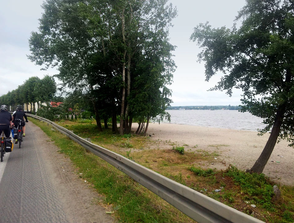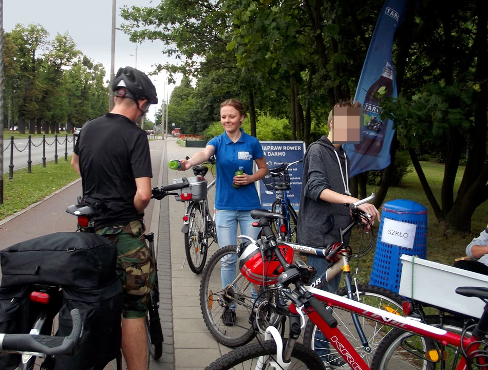 Mijamy stocznię i kierujemy się w stronę morza, jadąc wzdłuż drogi 468. Praktycznie cały czas jedziemy drogą dla rowerów. Wspaniała jest ta ciągłość w trasach rowerowych. Daje to płynność jazdy, bezpieczeństwo. Czujemy, że władze miasta myślą o rowerzystach. Po drodze mijamy stację rowerową Tarczyn. Rozdają za darmo soki i (również za darmo) robią prosty przegląd roweru.